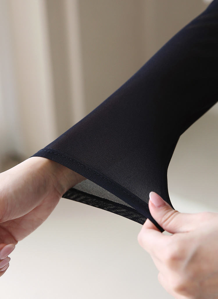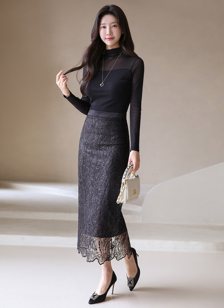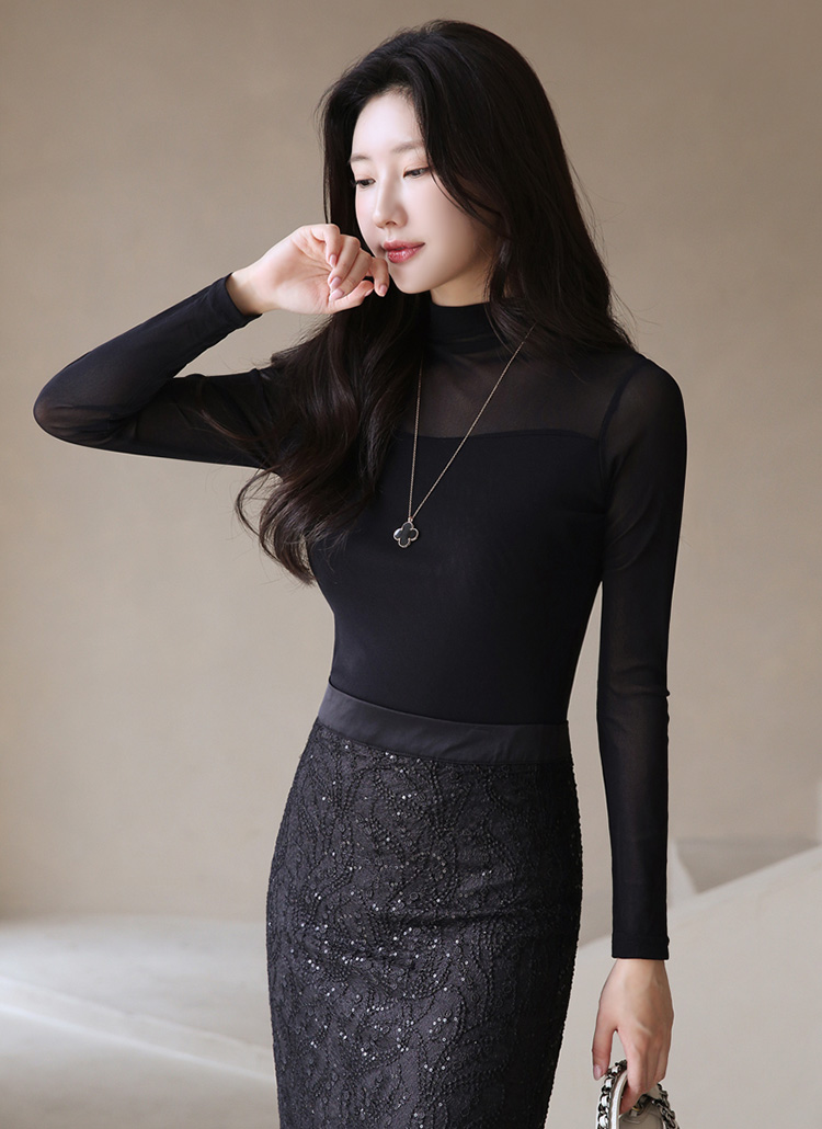 상단과 소매에 시스루 소재로 섹시한 무드와 여리한 실루엣을 선사하는