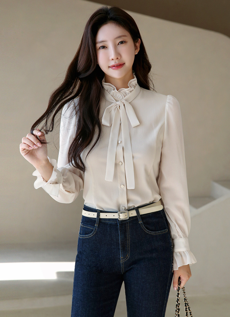 [LouisAngel] リボンタイ付き 2Wayフリルブラウス bl42088