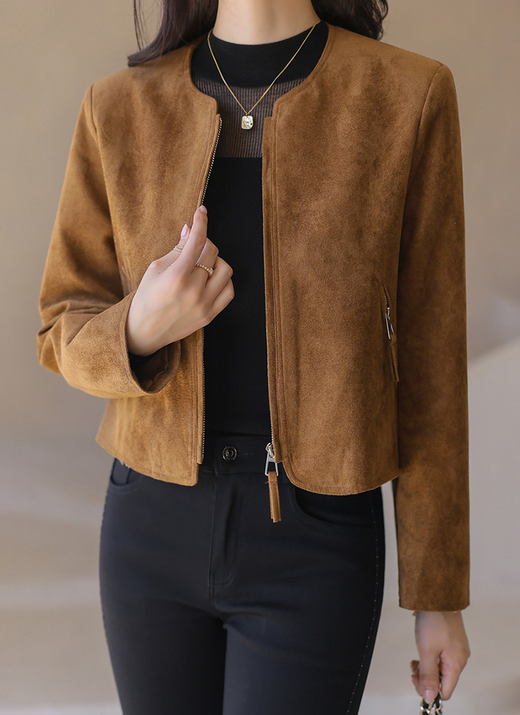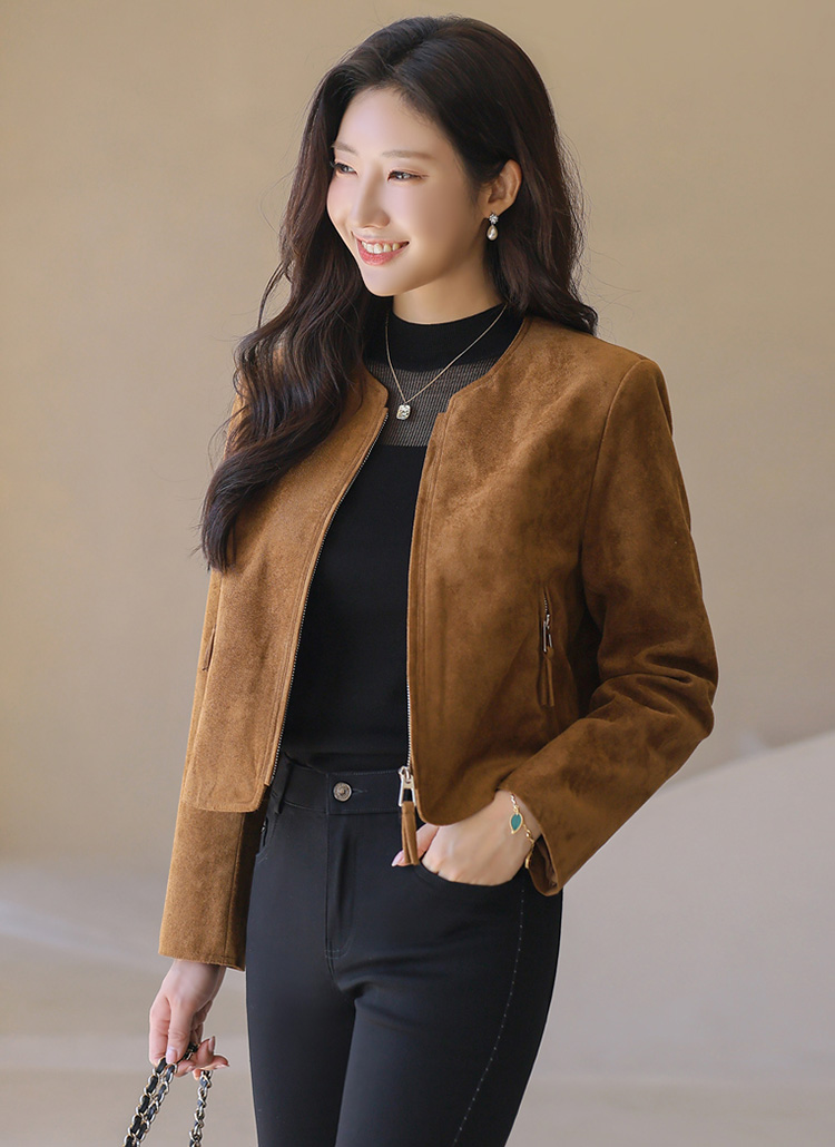 FW 시즌에 활용하기 좋은 부드럽고 따스한 감촉의 비건 스웨이드 집업 자켓이에요 :)