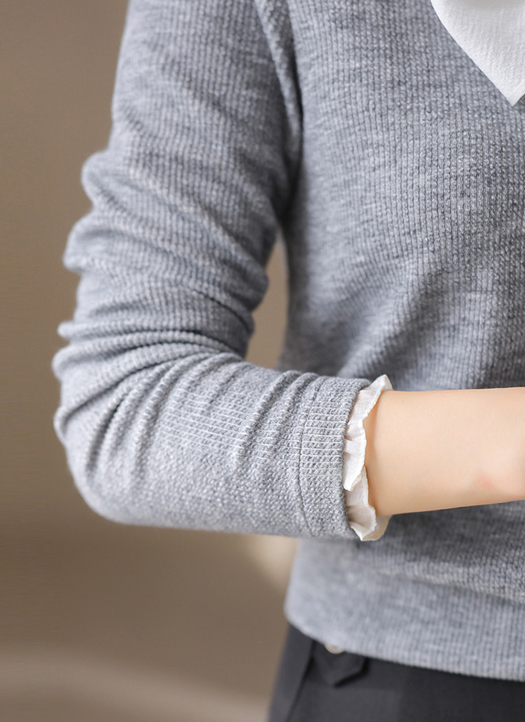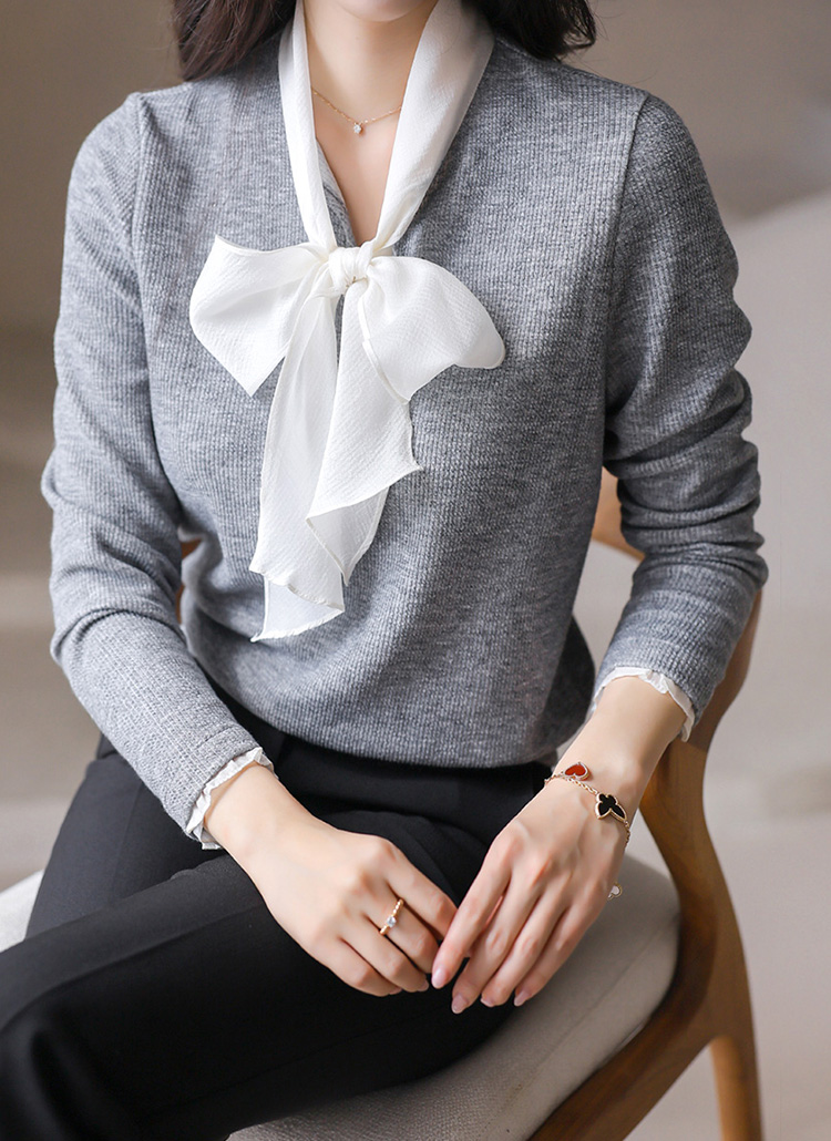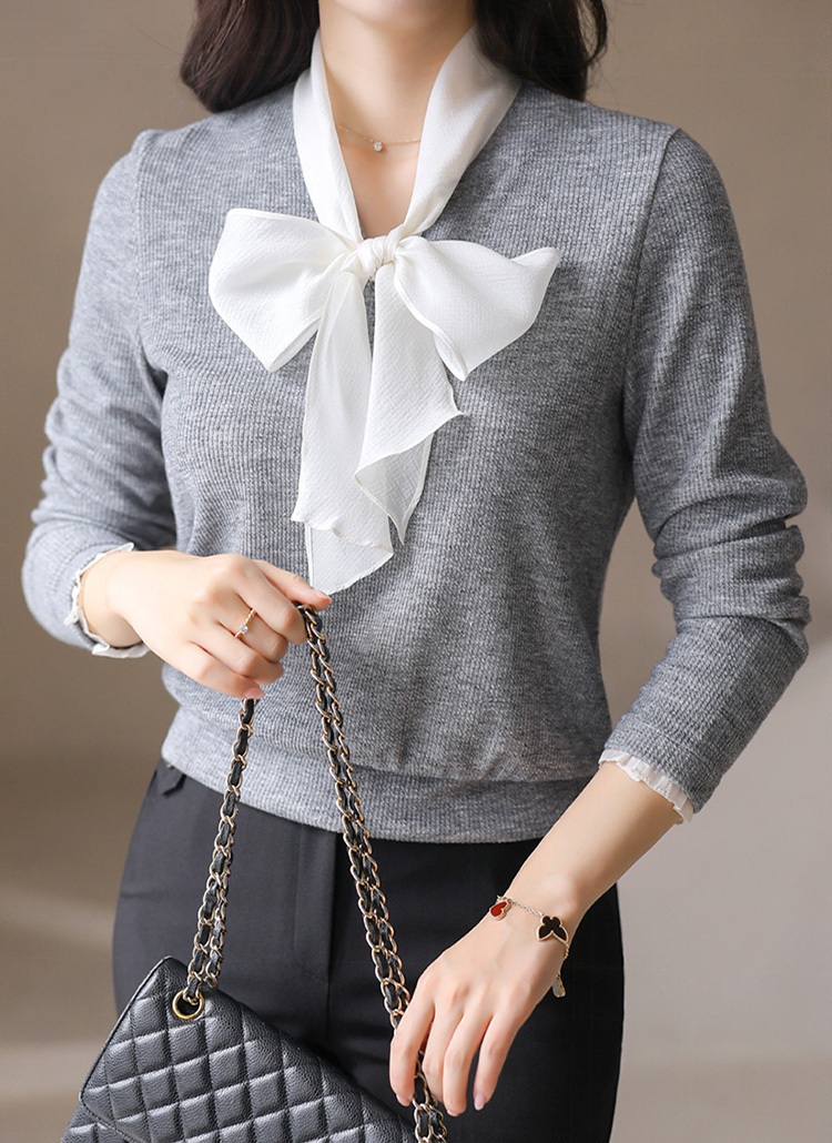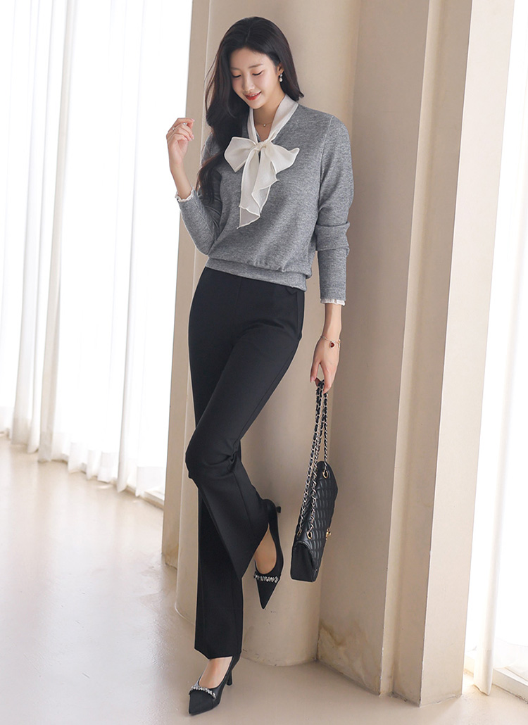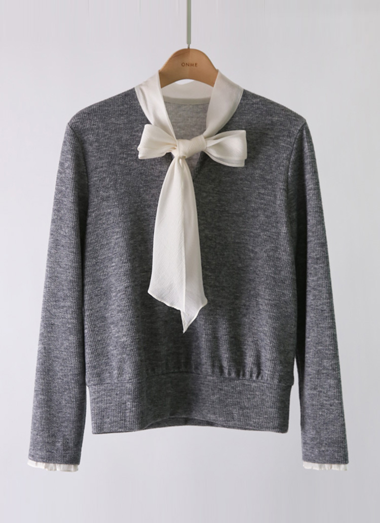 [LouisAngel] レイヤード風リボンタイ付きふくれージャガードプルオーバー ts42094
