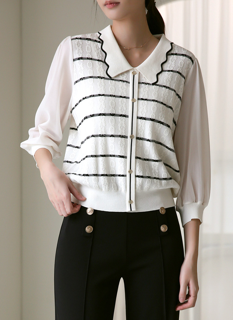 여리여리 쉬폰 소매와 물결 카라 디자인으로