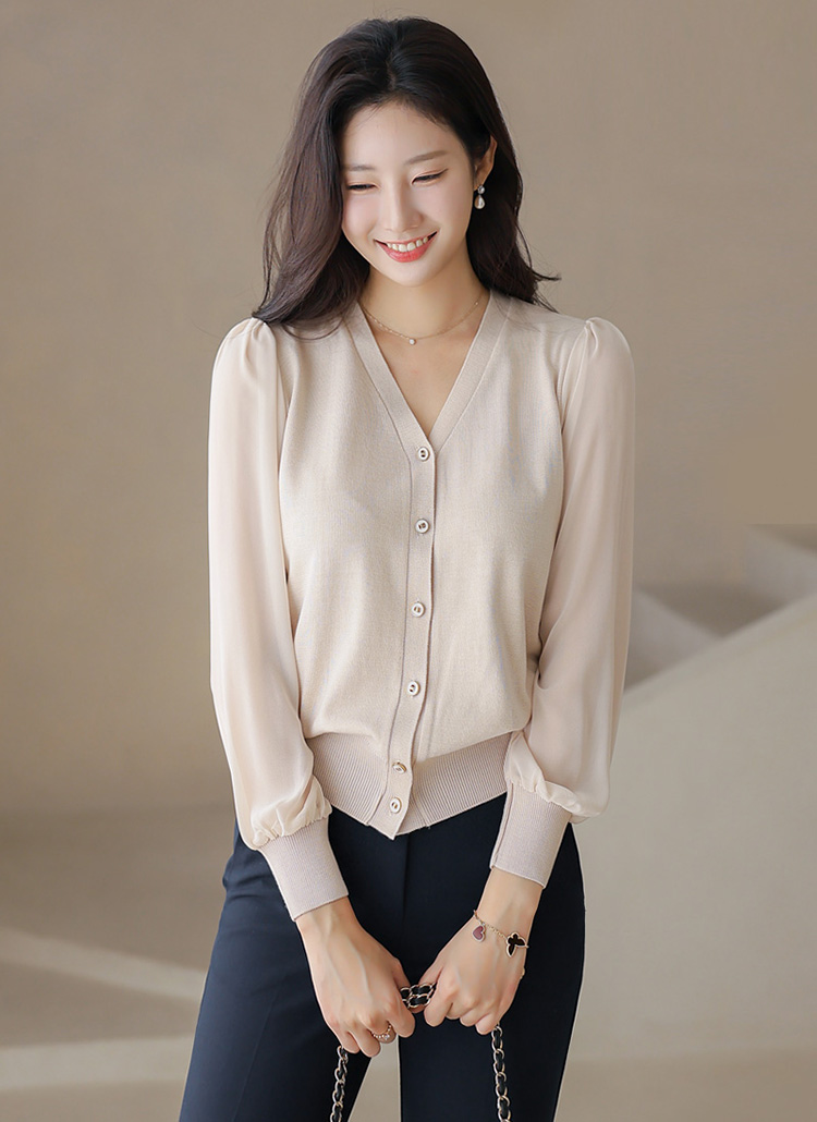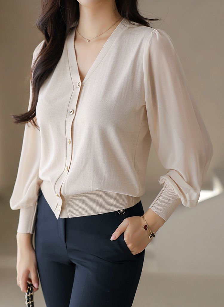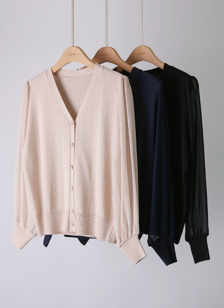 シアースリーブVネックニットカーディガン cd42109