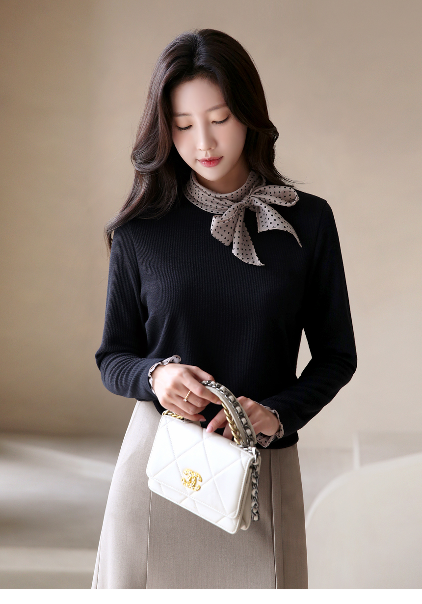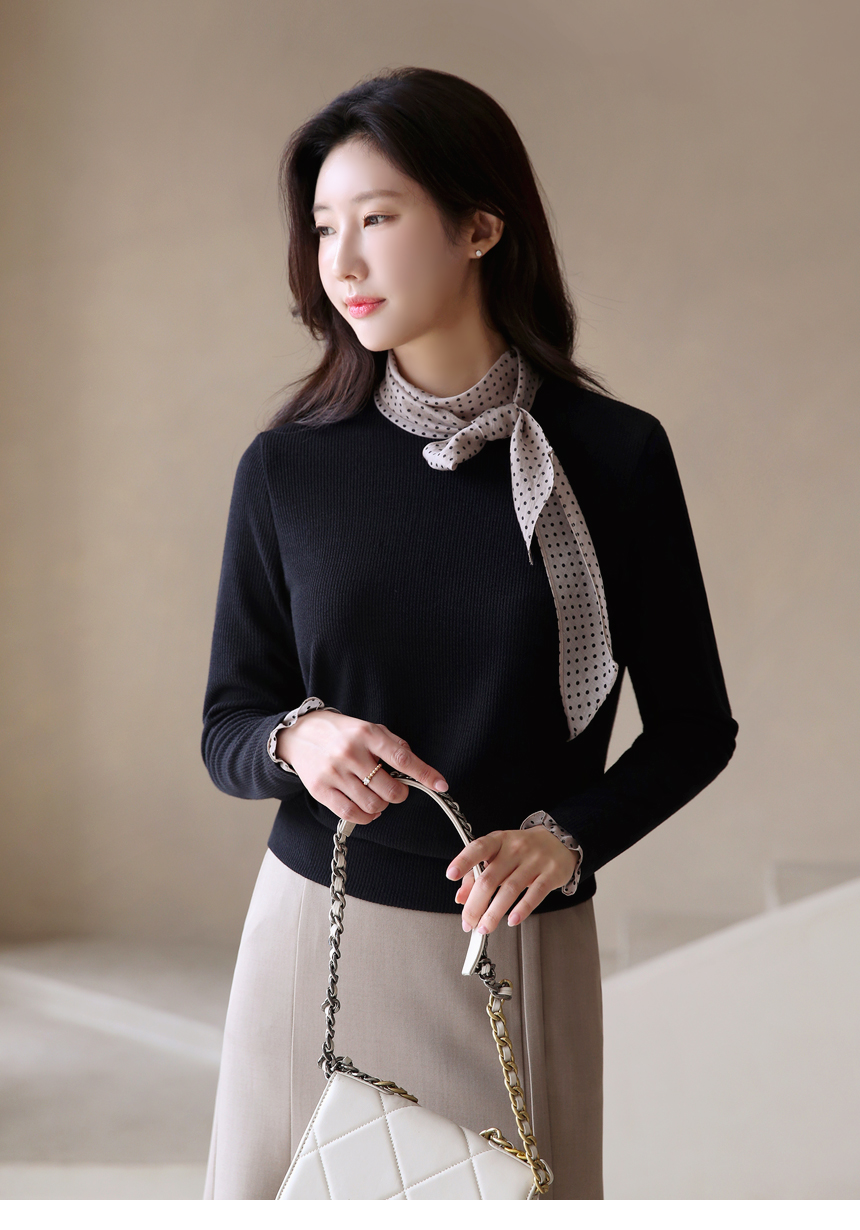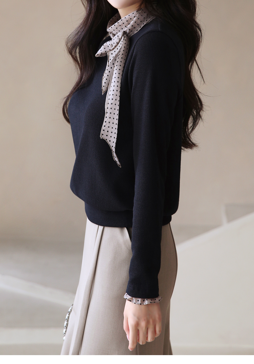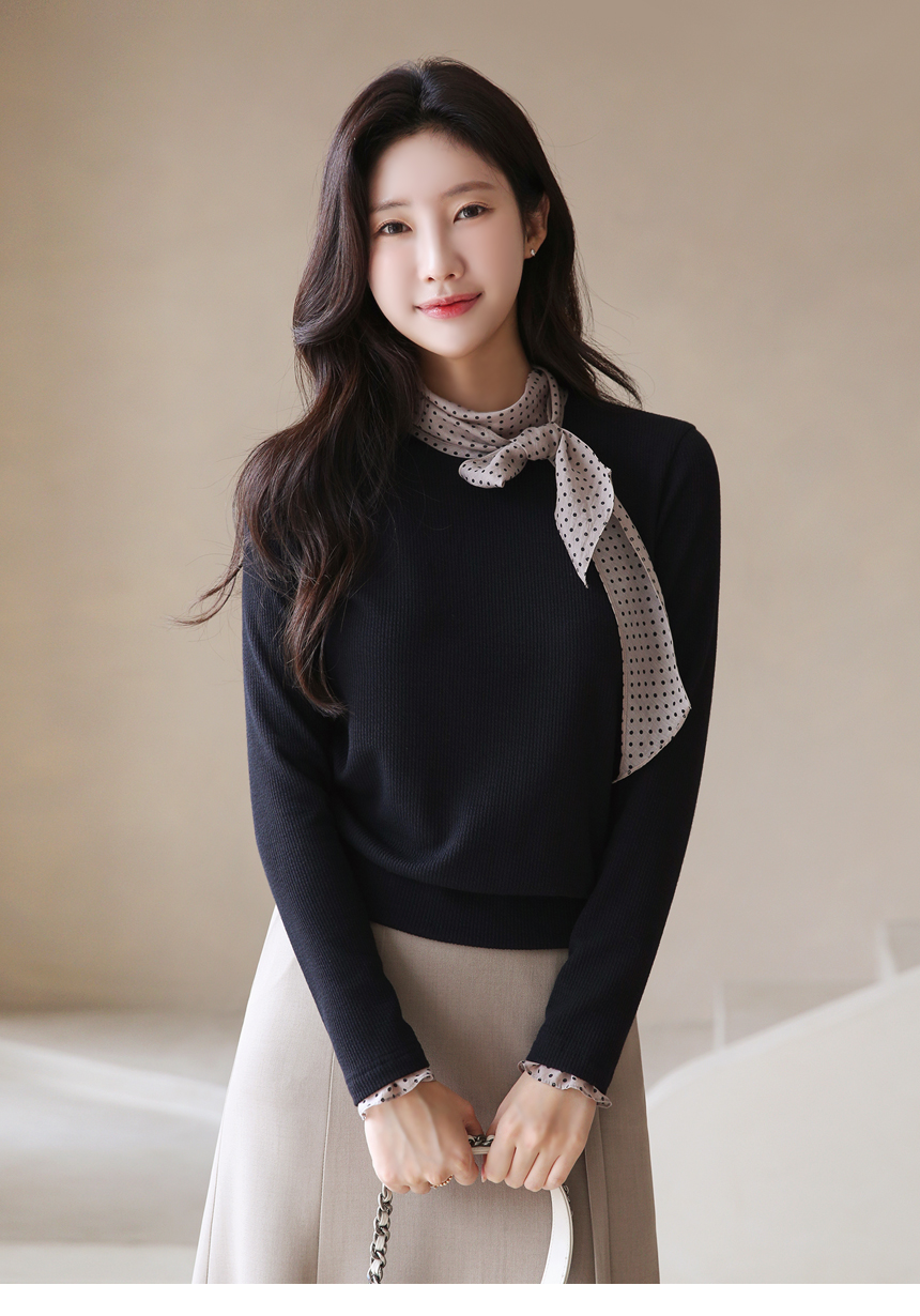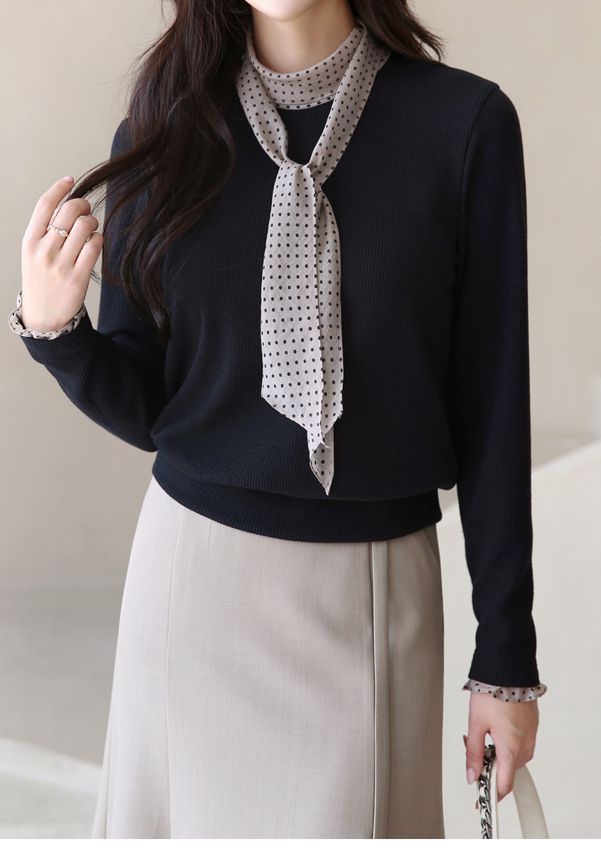 투웨이 도트 스카프 골지 블라우스 티셔츠에요 :)