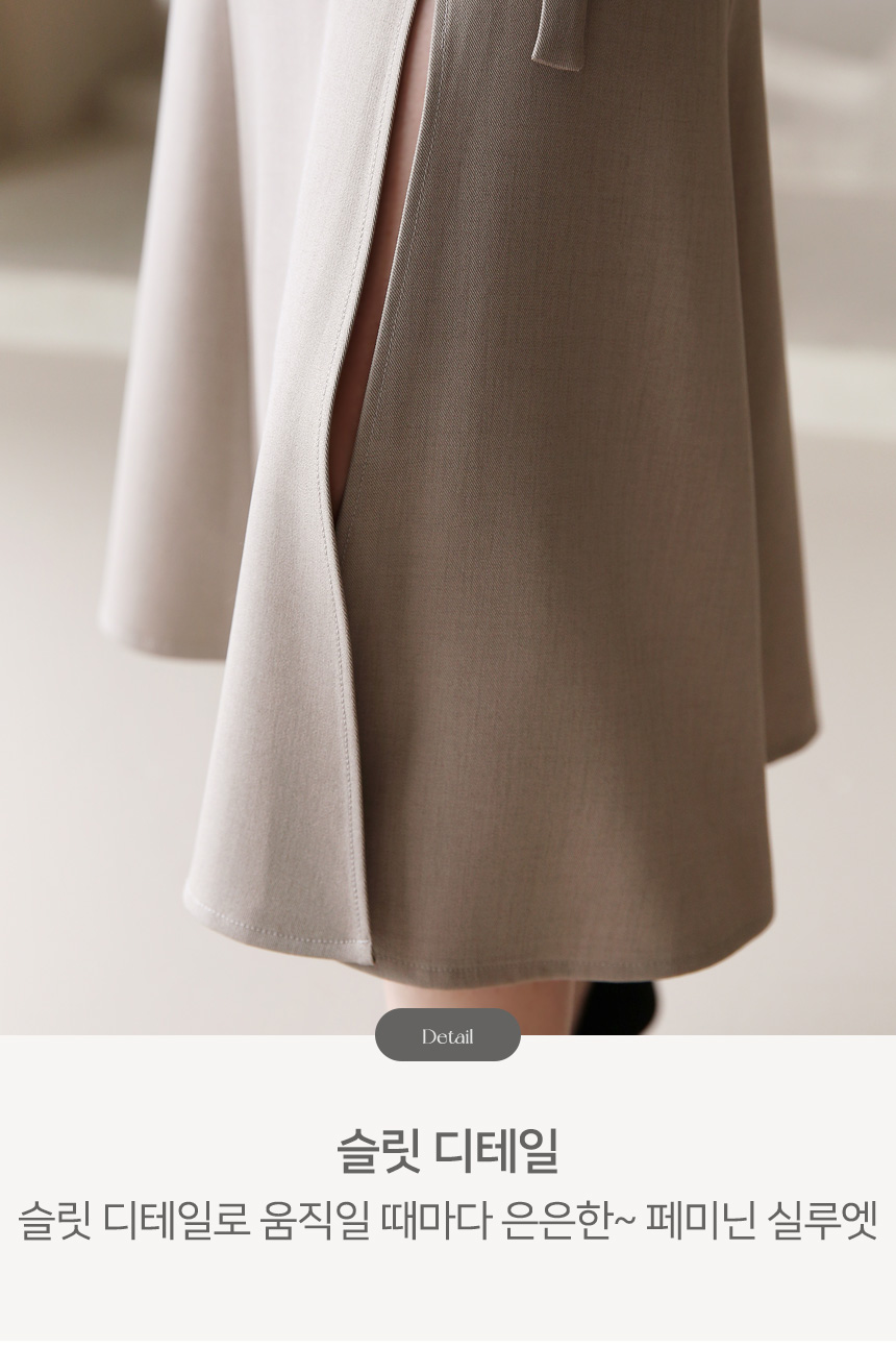 사이드 슬릿으로 움직일때 마다 페미닌한 포인트를 더해줍니다