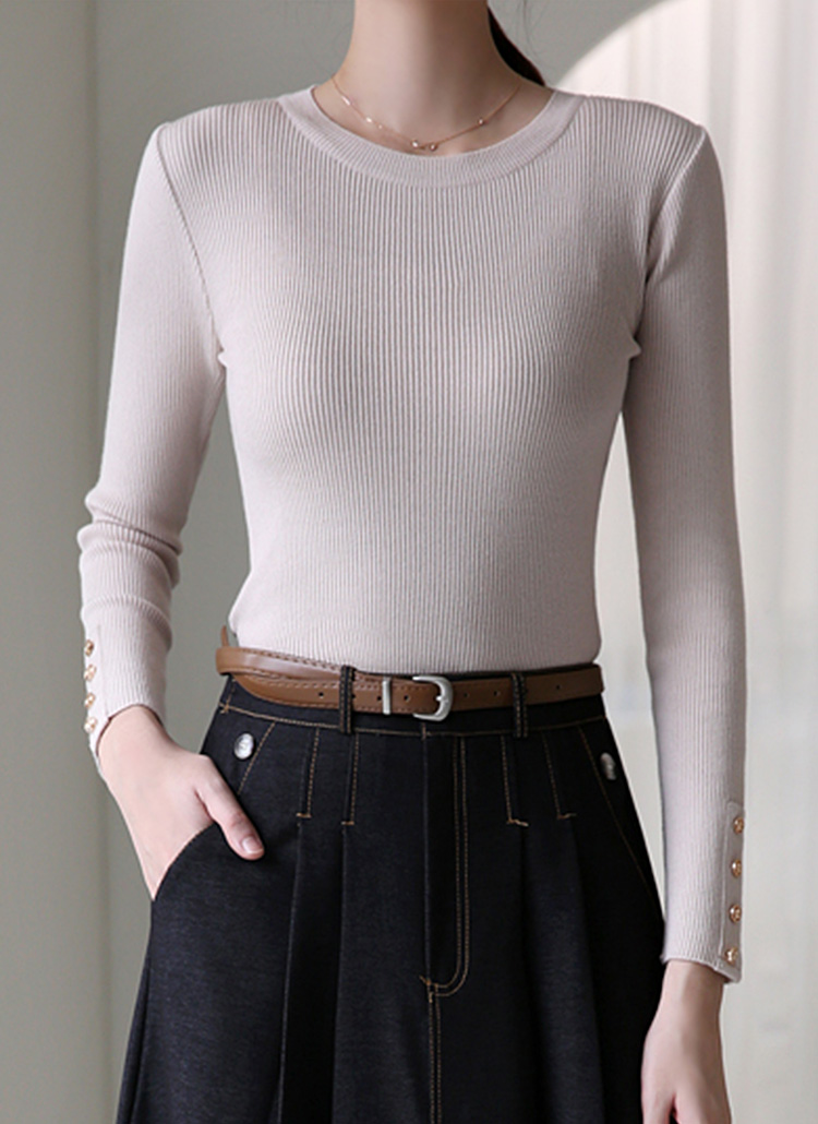 소매 끝단의 골드 버튼이 포인트를 주어 세련된 매력을 더하는 골지 라운드 니트에요 :)