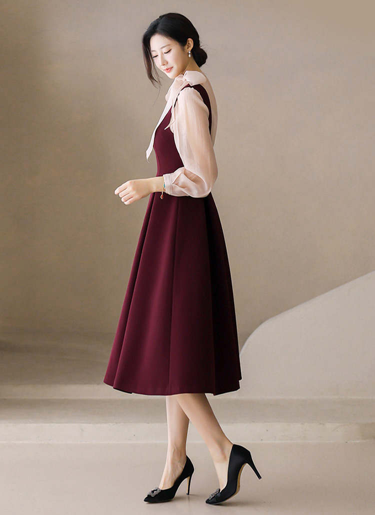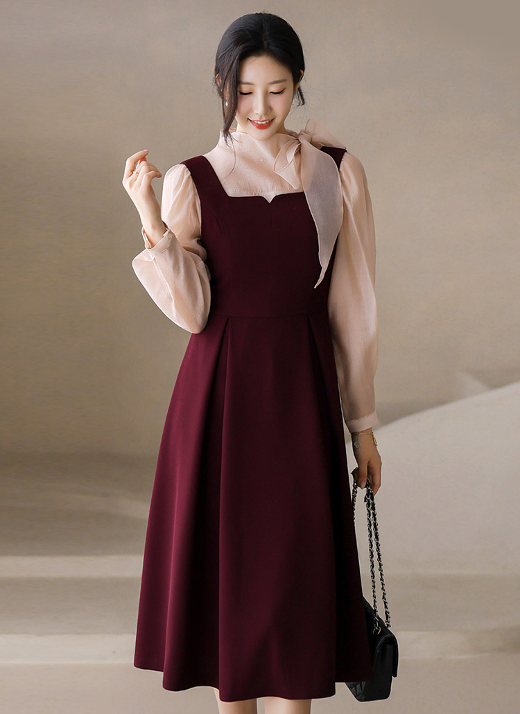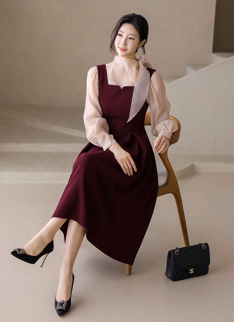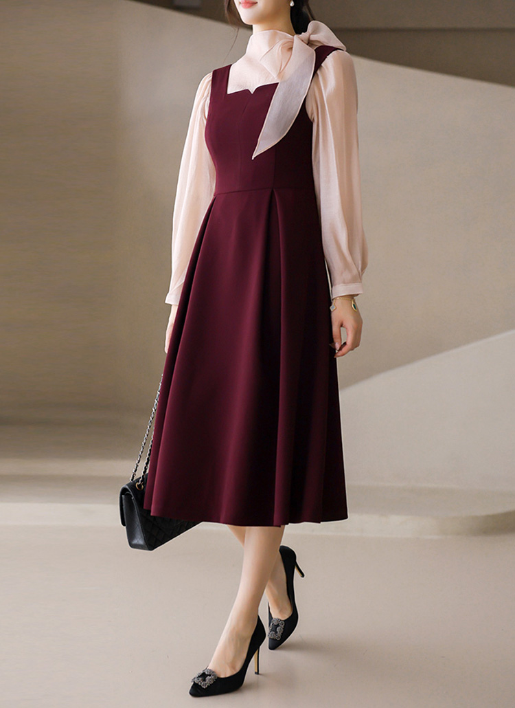 [LouisAngel] ハートネックノースリブロングフレアワンピース op42145