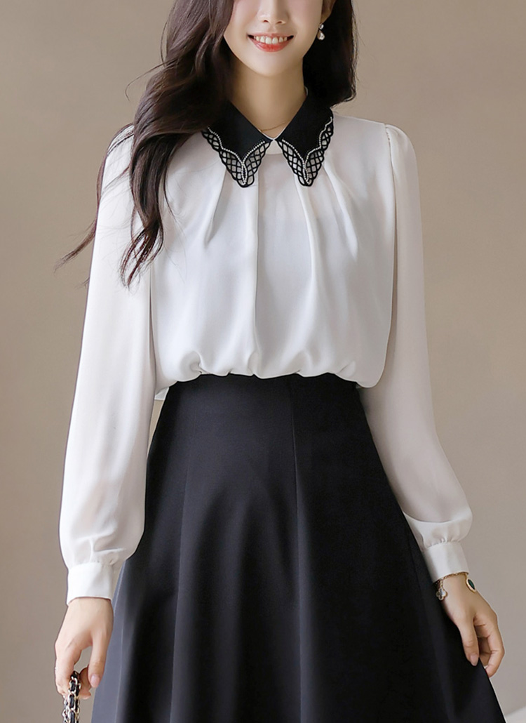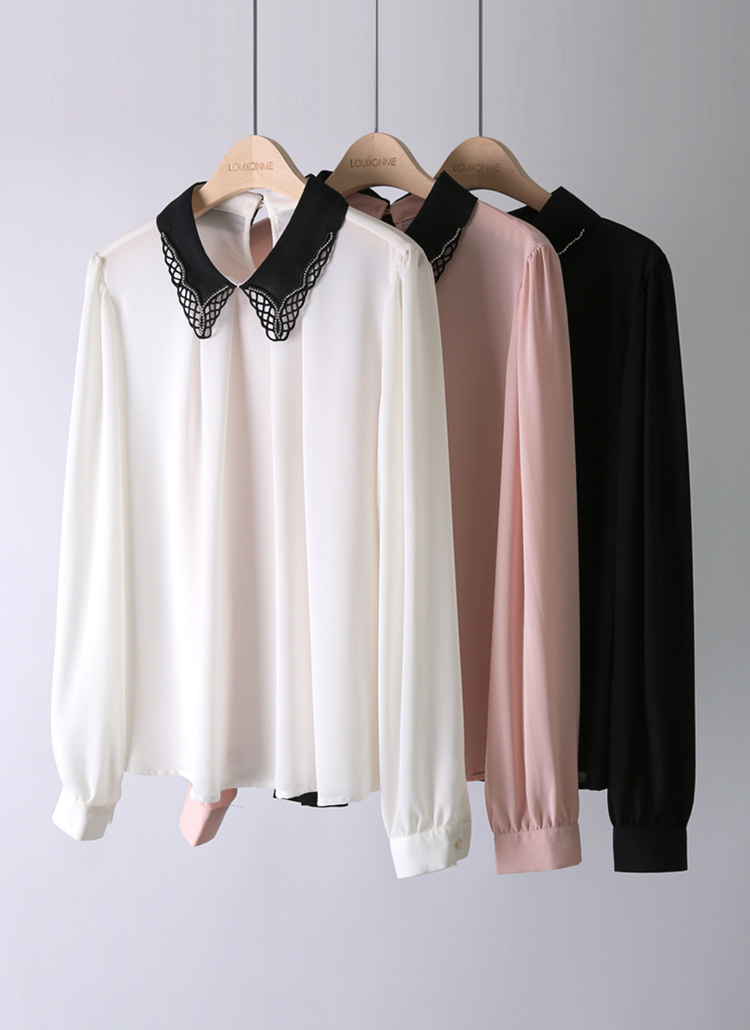 配色ビジューモチーフレース襟ブラウス bl42166