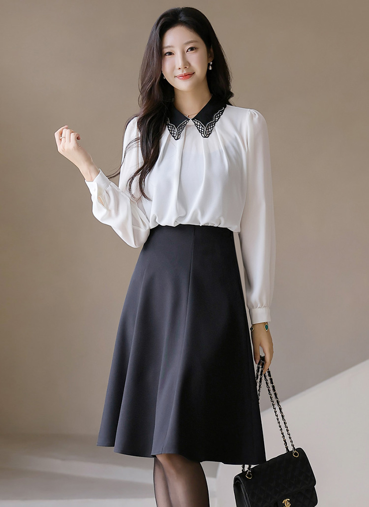 카라 배색 셔링 블라우스에요 :)