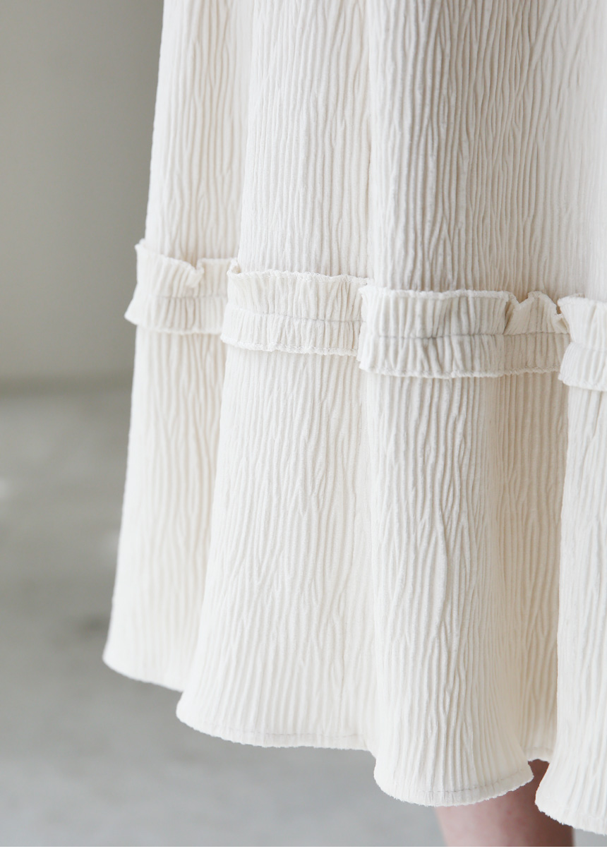 물결 라인의 쟈가드 소재에 캉캉 플레어 디자인으로