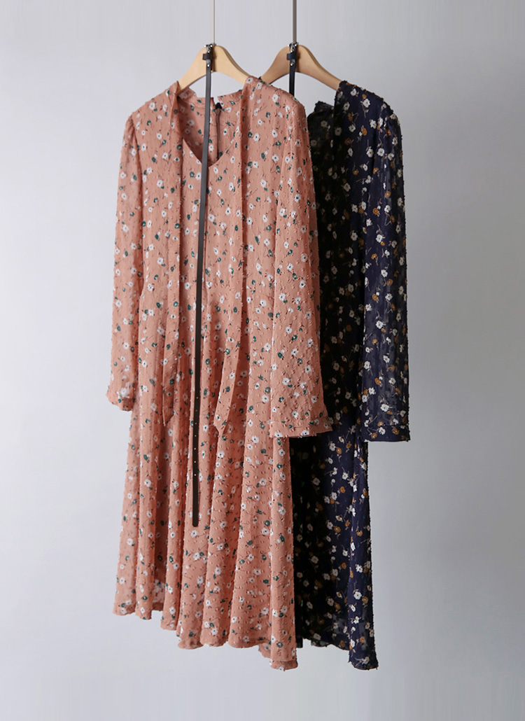 입체적인 도트 쟈가드 위에 미니 플라워 프린팅을 더해