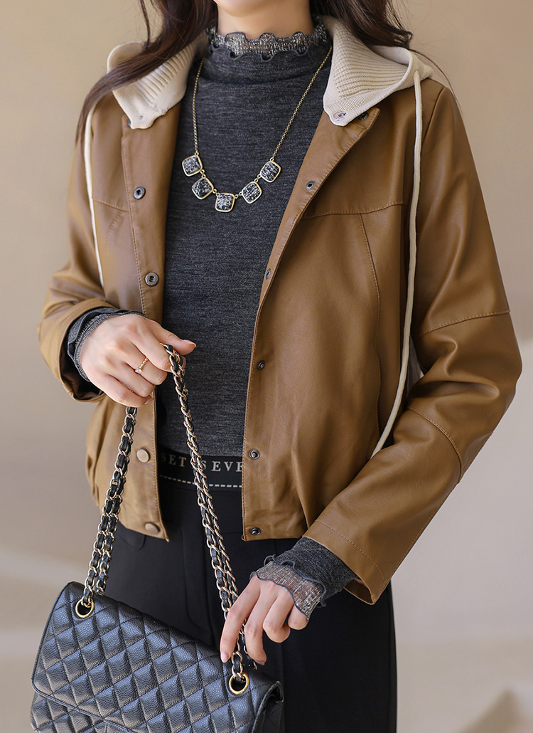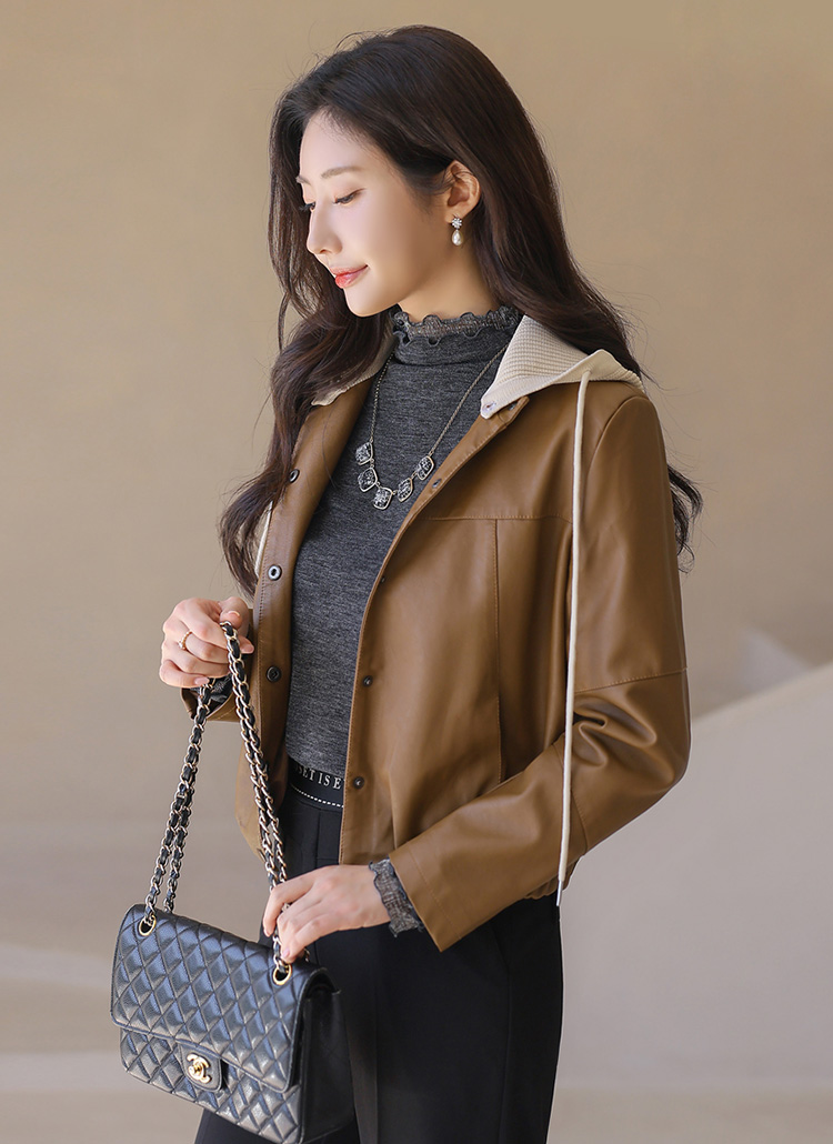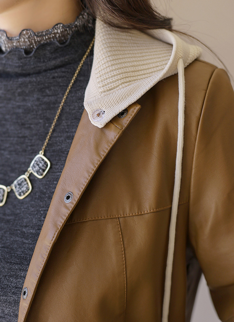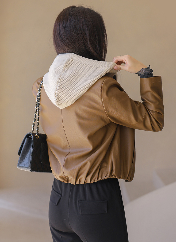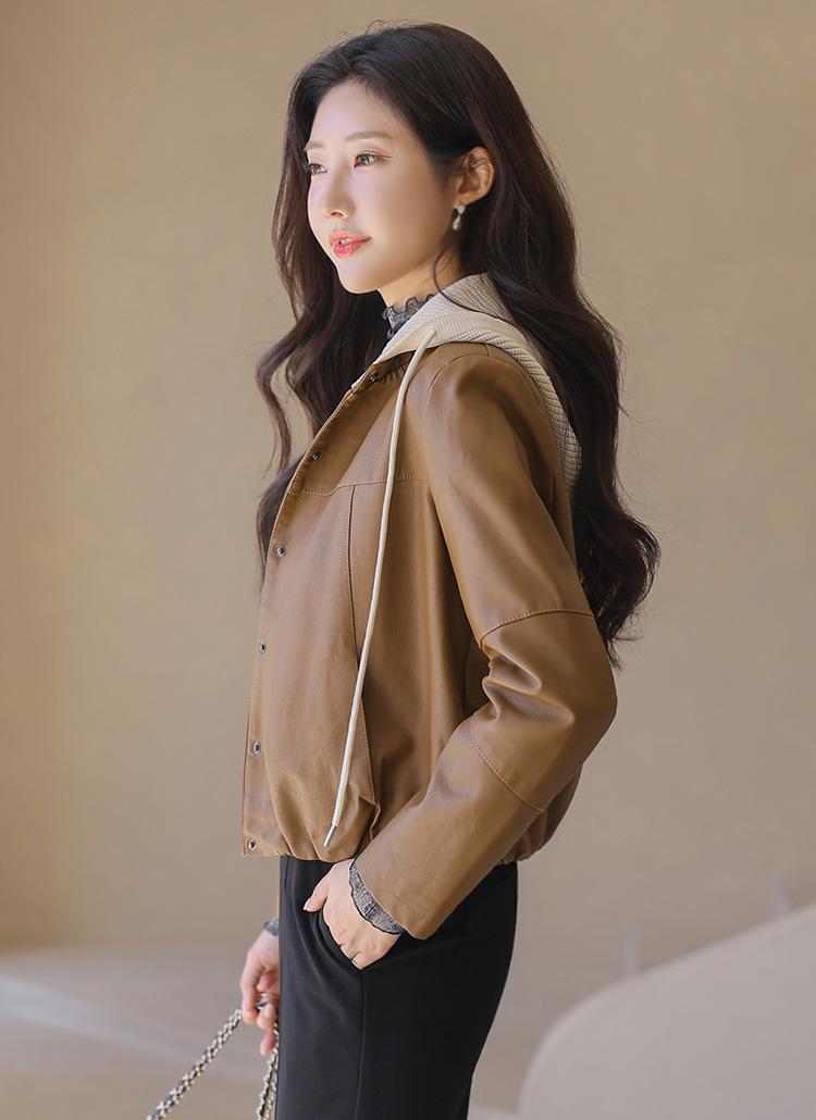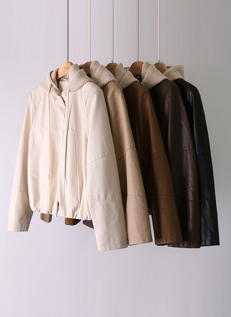【5色展開】ニットフード付き 2Wayフェイクレザージャケット jk42187