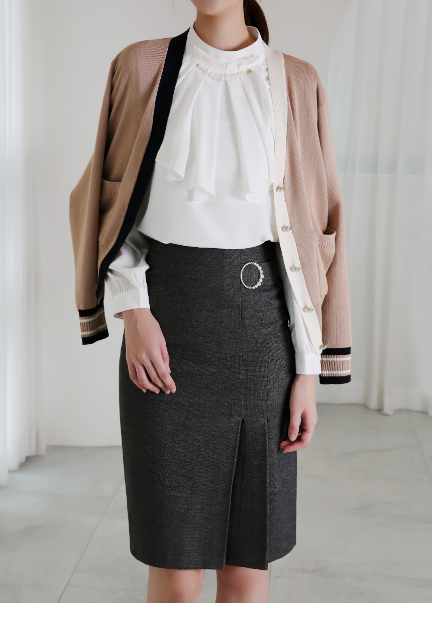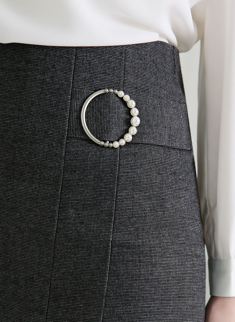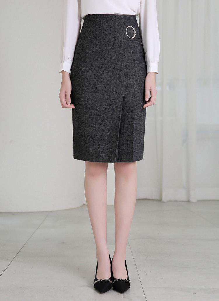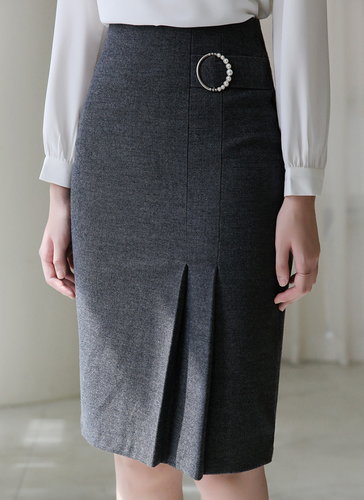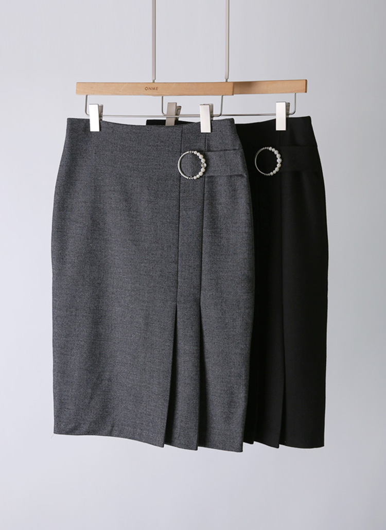 パールバックル付きサイドプリーツタイトスカートsk42196