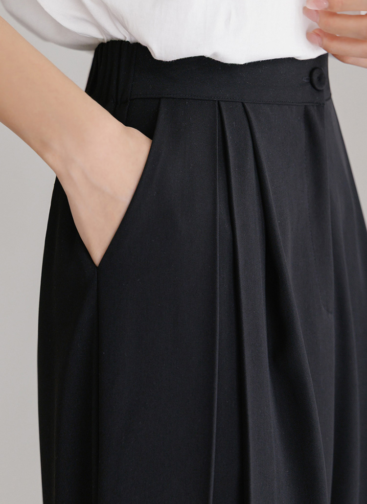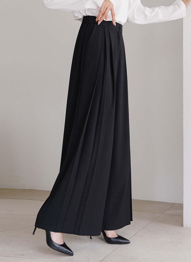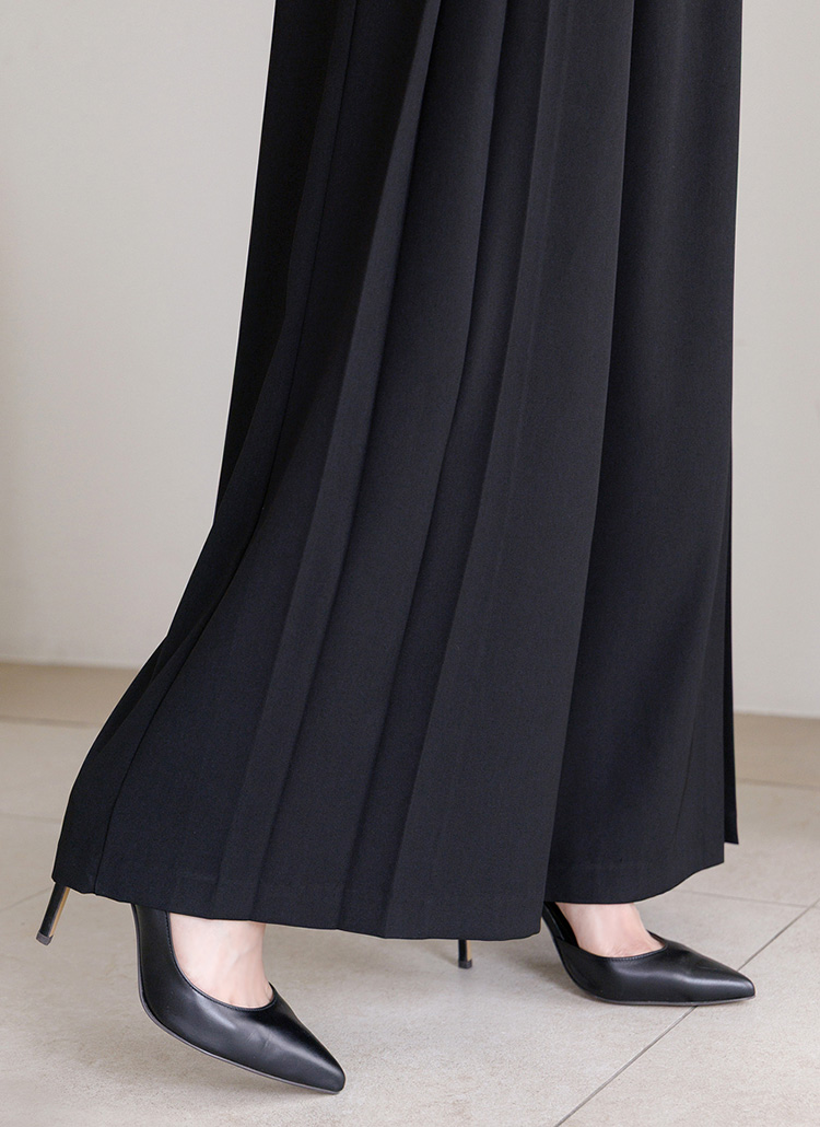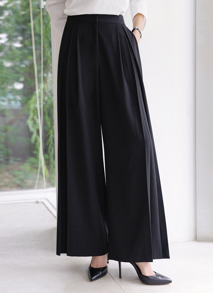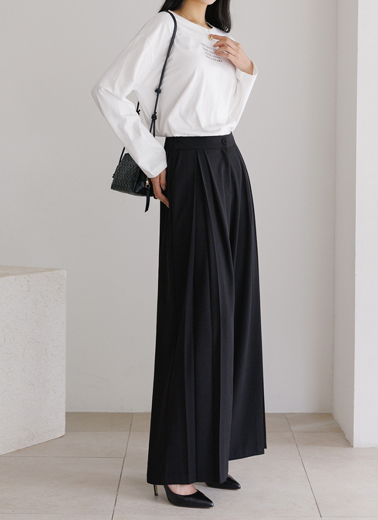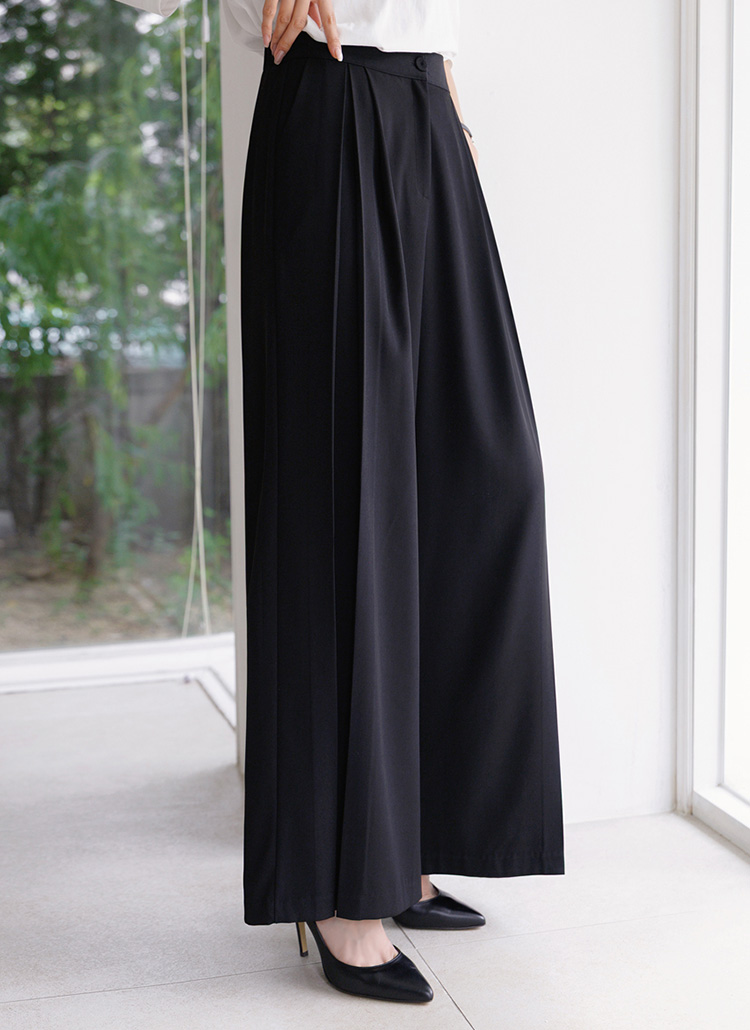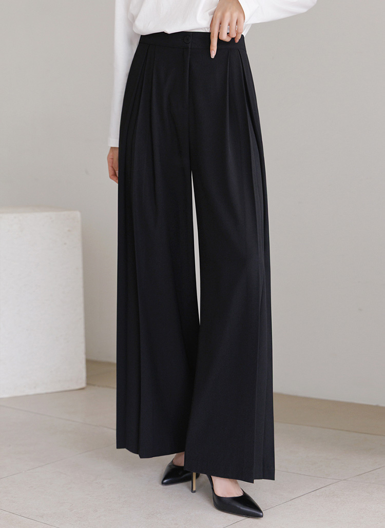세련된 핀턱 절개로 와이드한 실루엣을 완성해주며