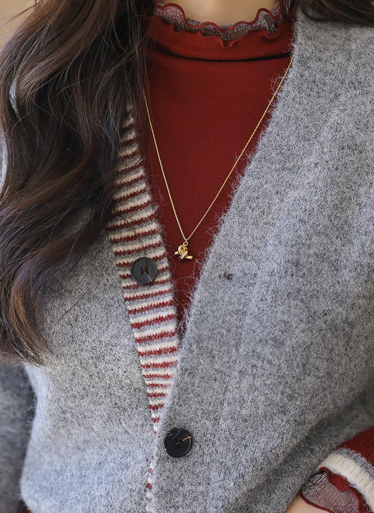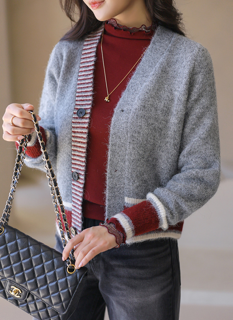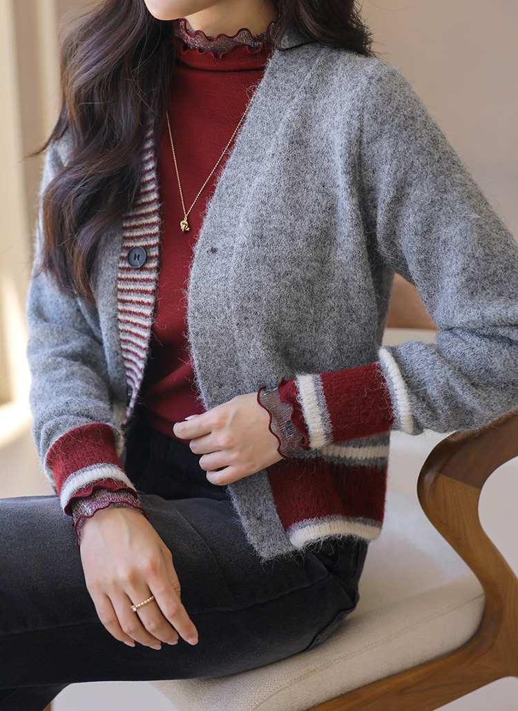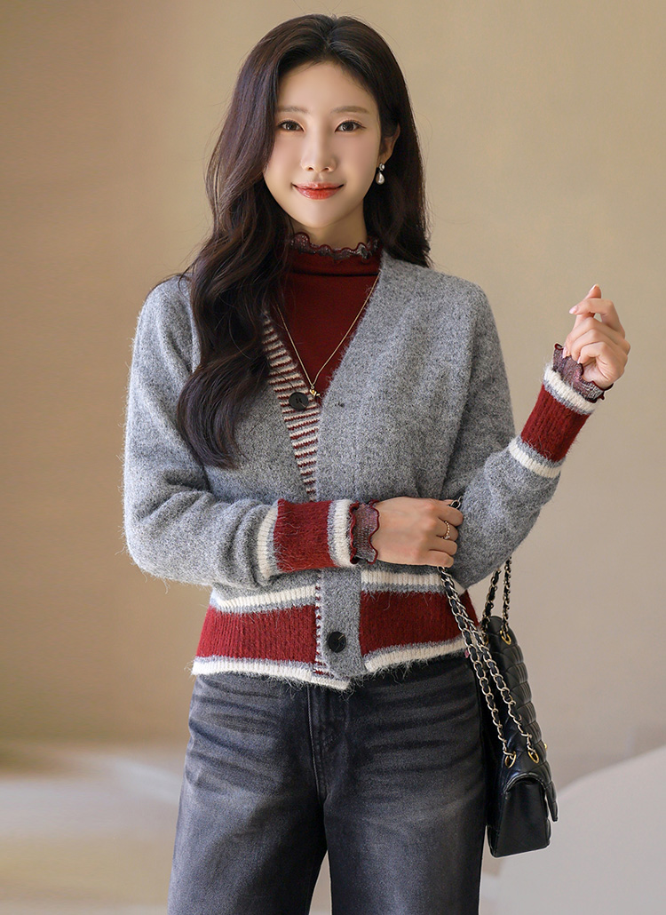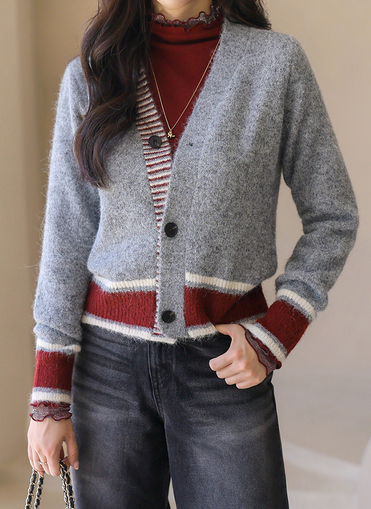 ウールブレンドヘアリー配色ニットカーディガン cd42232