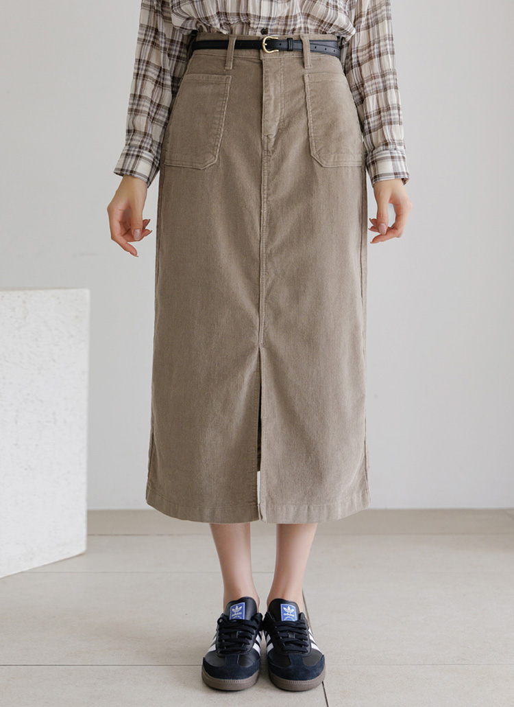 [THE ONME] フロントスリットコーデユロイロングスカート sk42241