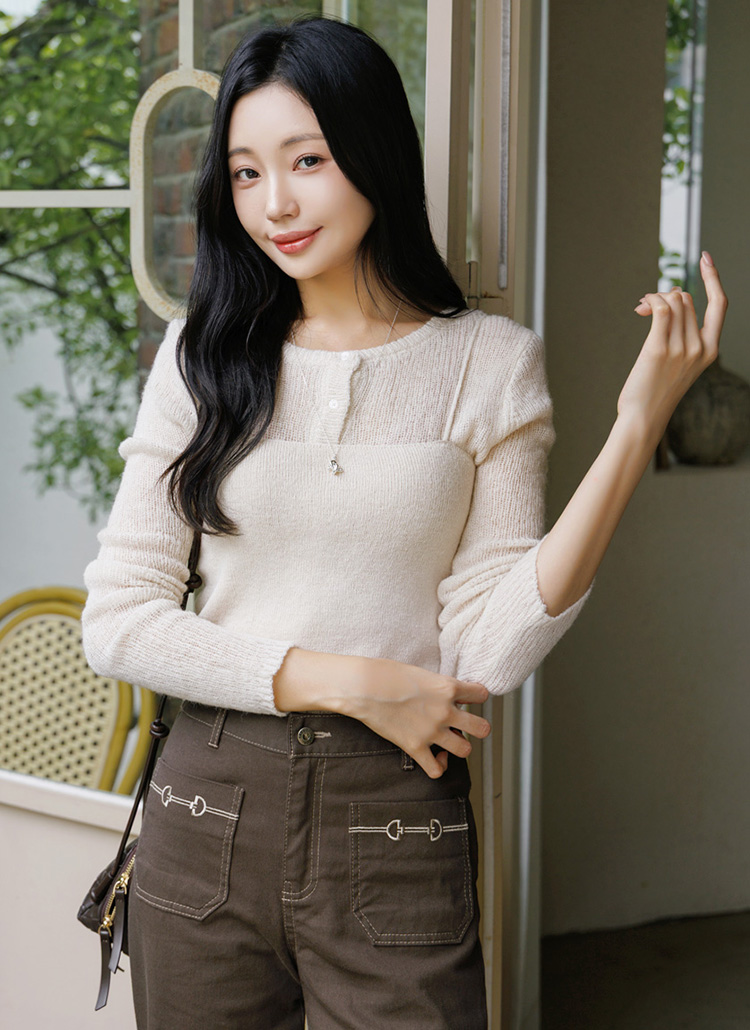페미닌한 무드가 돋보이는 뷔스티에 레이어드 니트 세트에요 :)