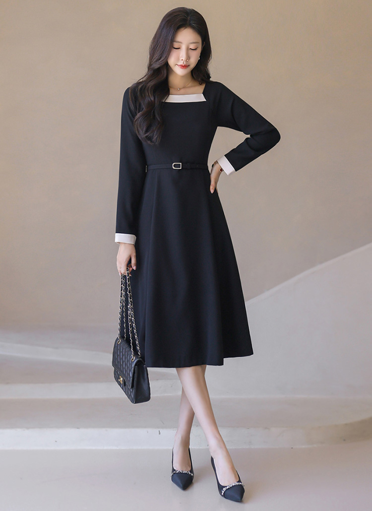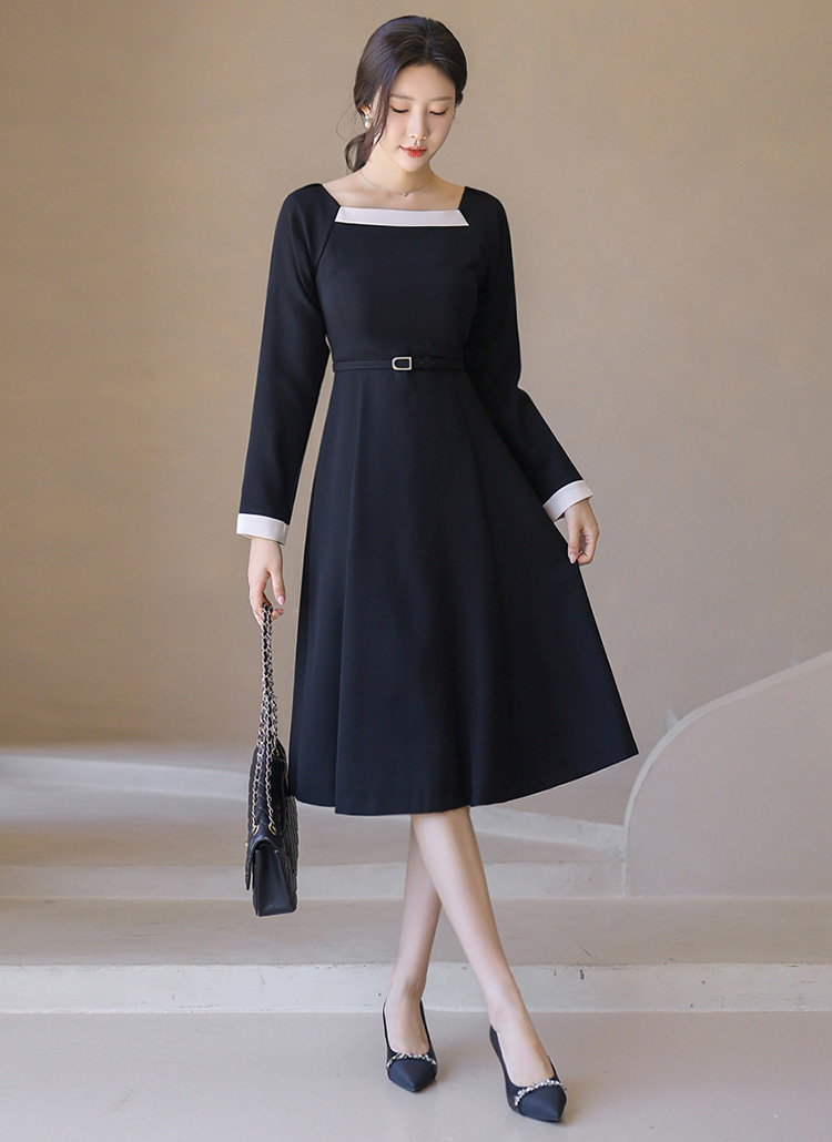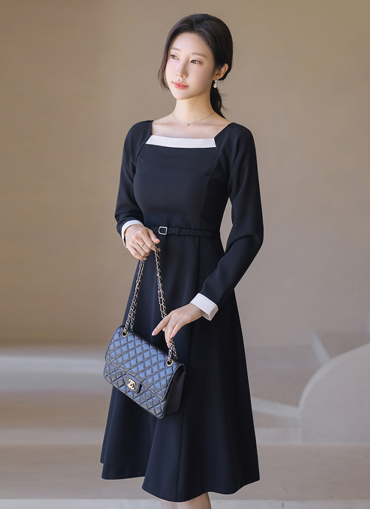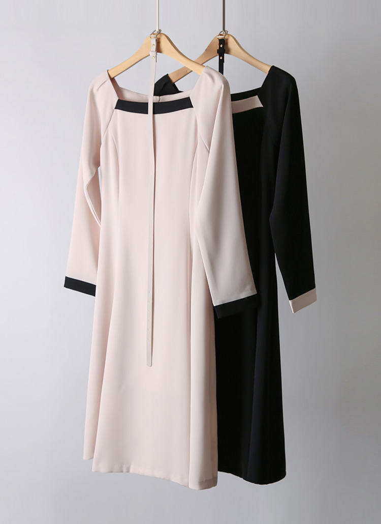 ベルト付き スクエアネック 配色フレアワンピース op42250