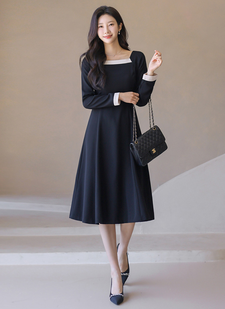 배색 라인이 돋보이는 스퀘어 넥 디자인으로