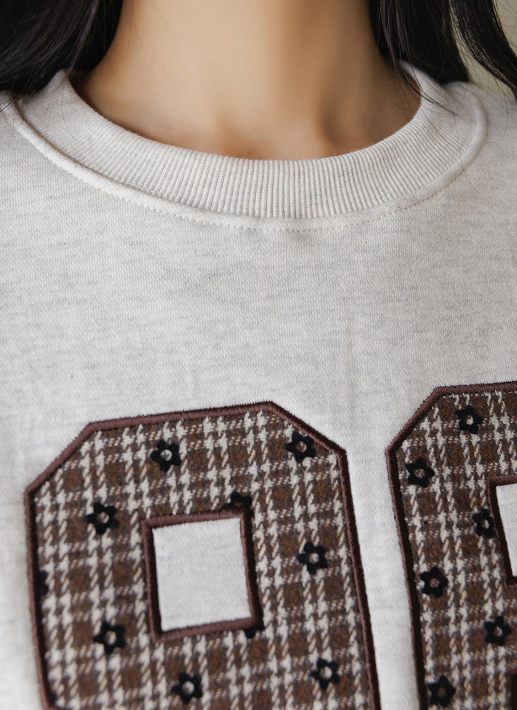 체크 패턴과 플라워 자수 패치가 포인트를 주어