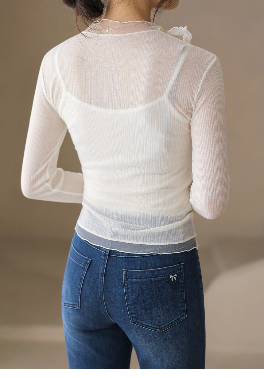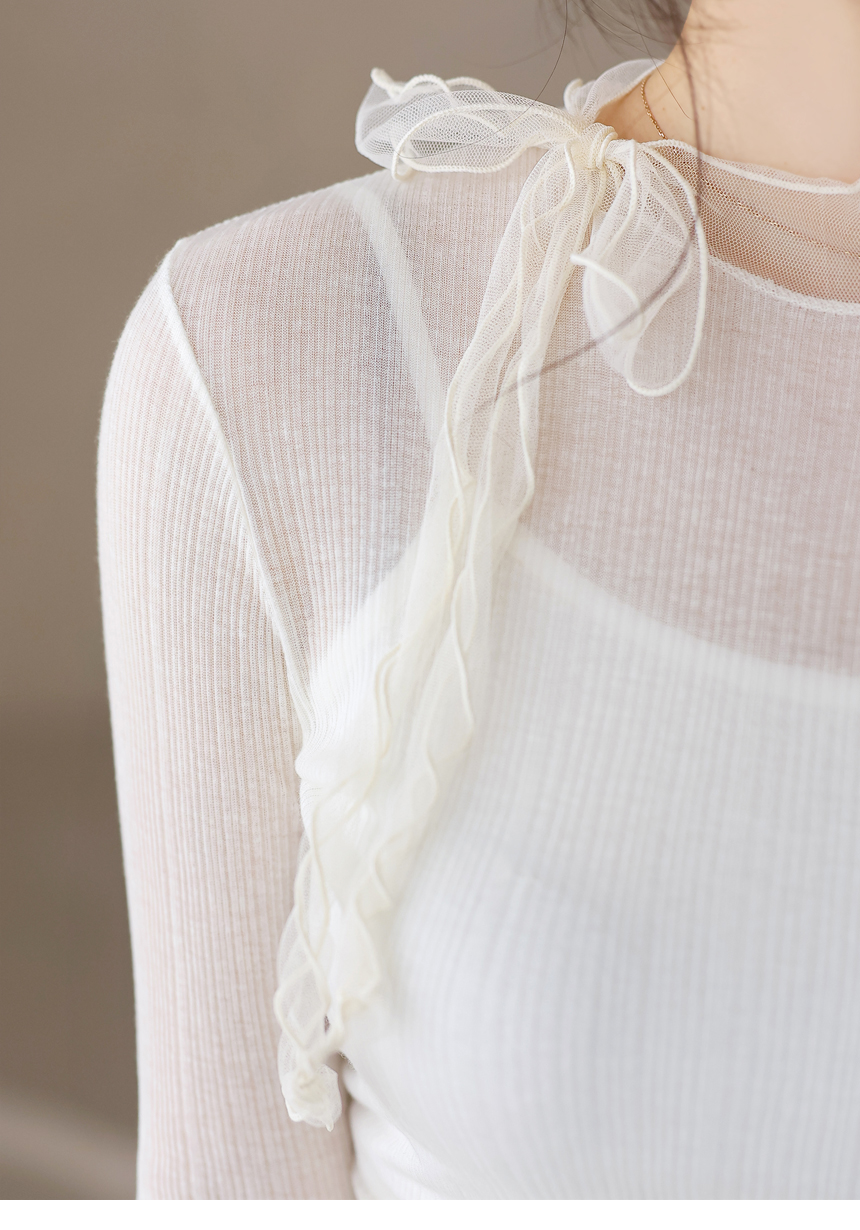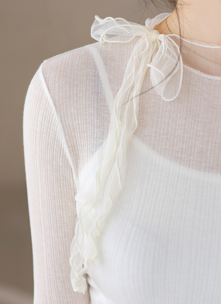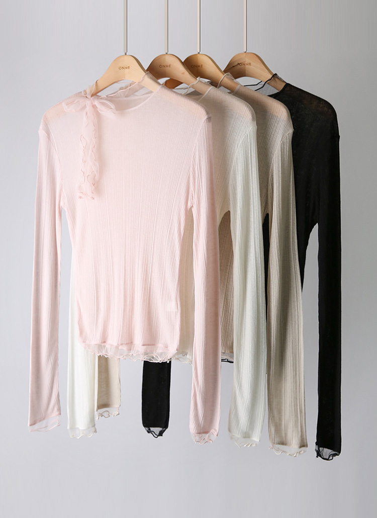 【4色展開】リボンネック ダブルフリル シースルーリブプルオーバー ts42280
