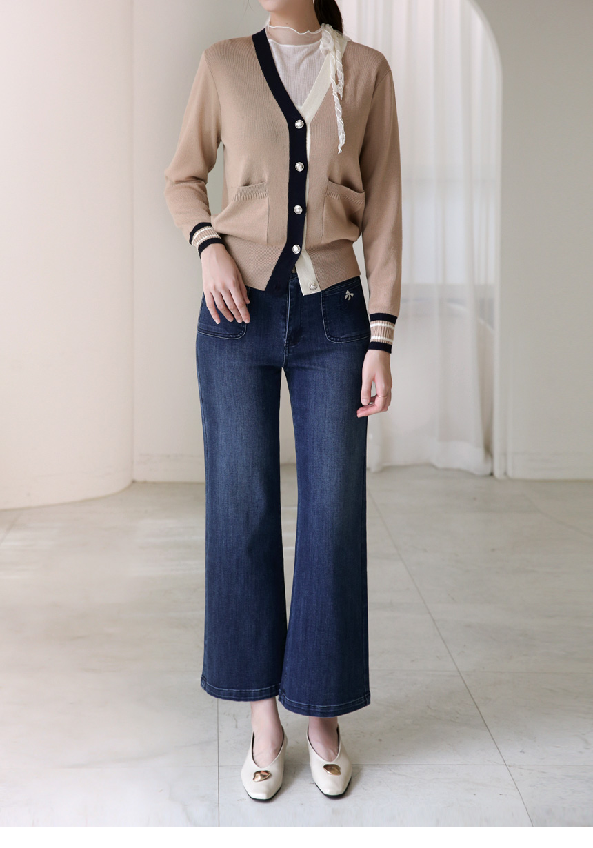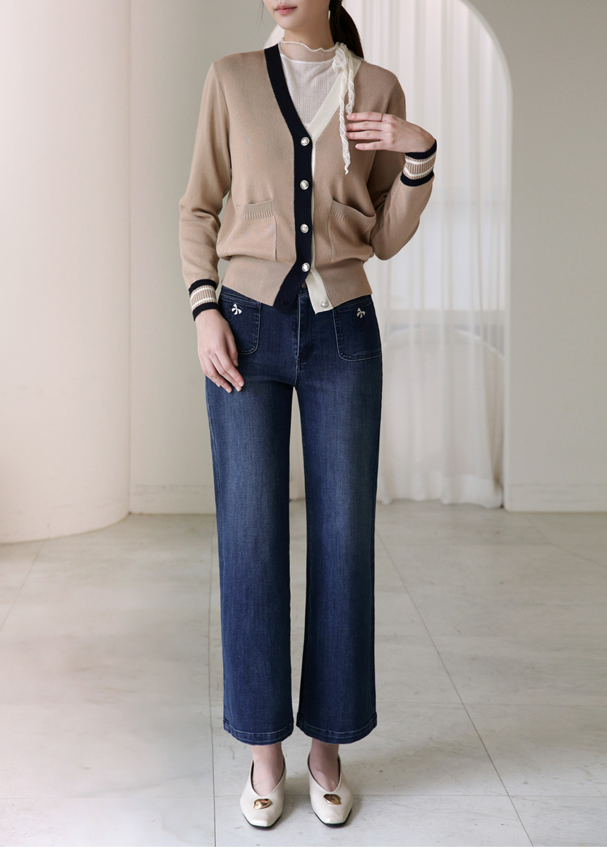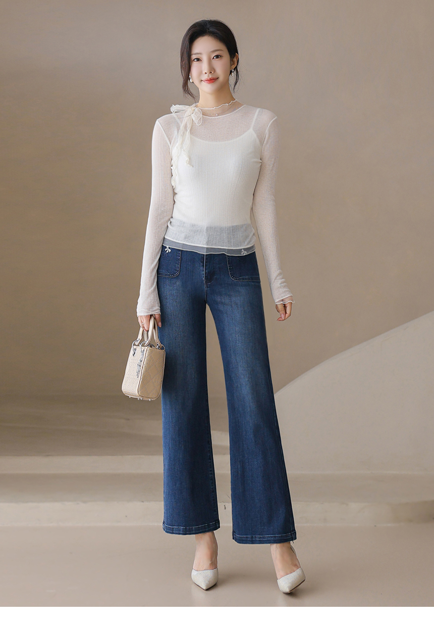 • フロントポケット リボン刺繍 ワイドデニムパンツ pt42283