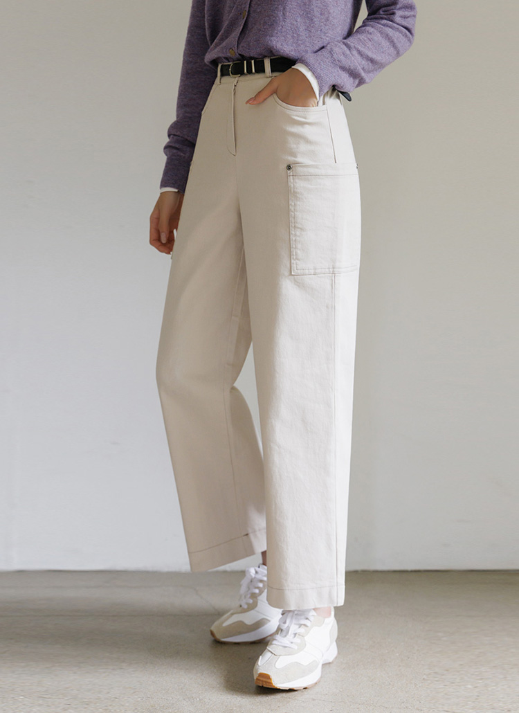 스티치 라인으로 캐주얼한 매력이 돋보이는 와이드 코튼 팬츠에요 :)