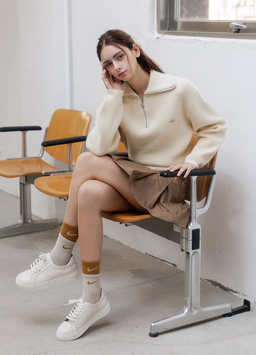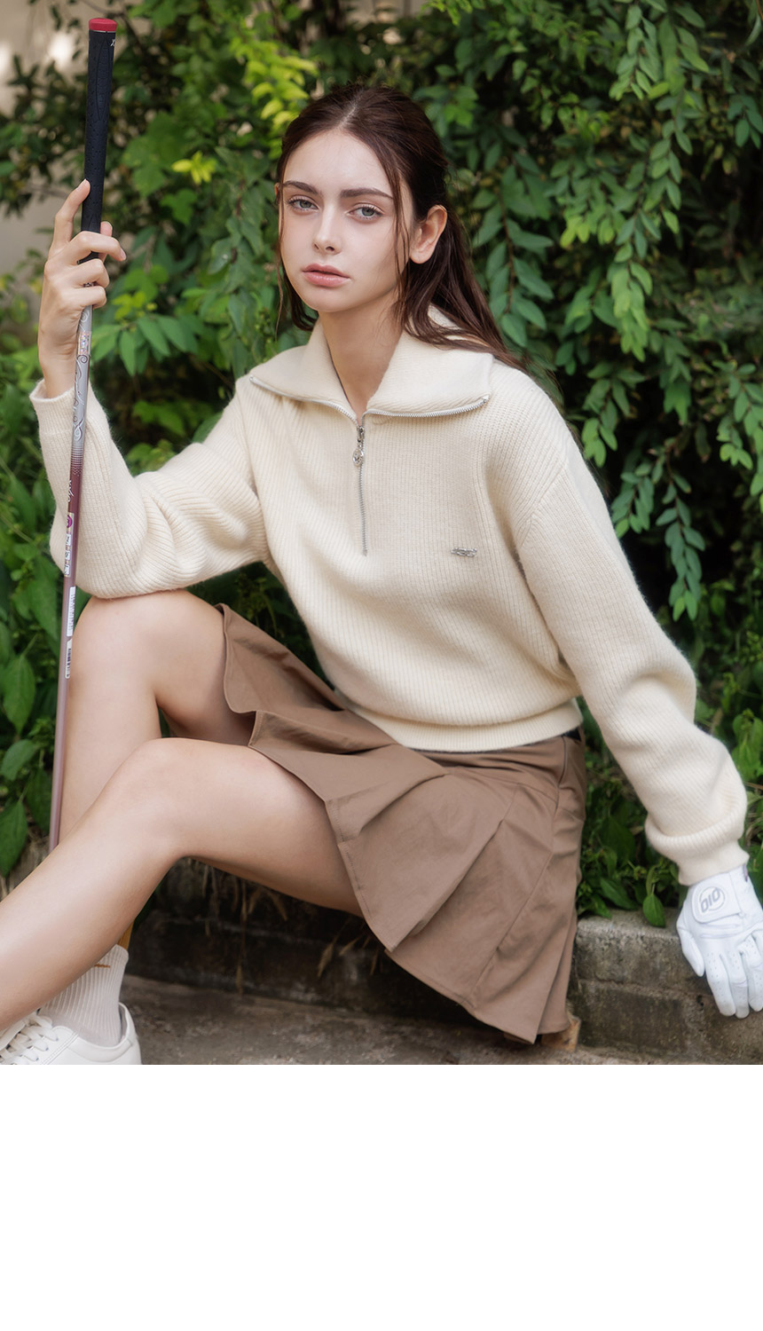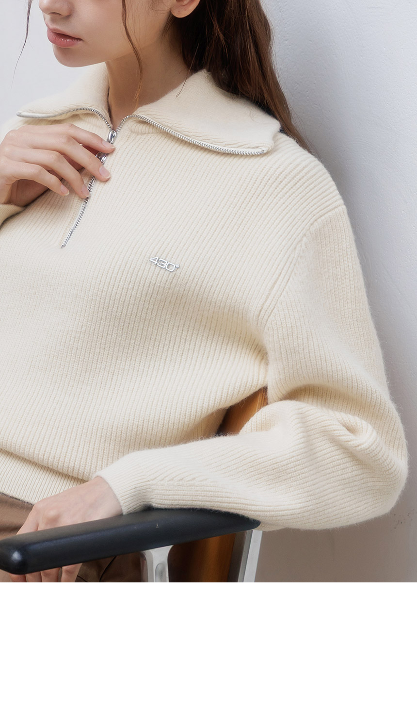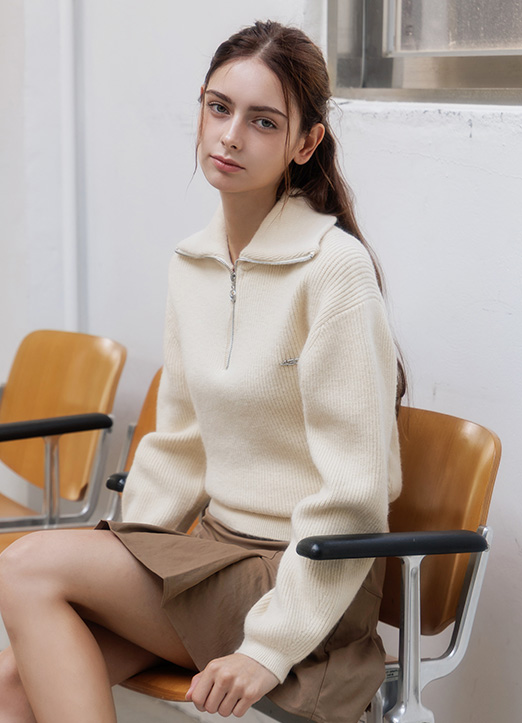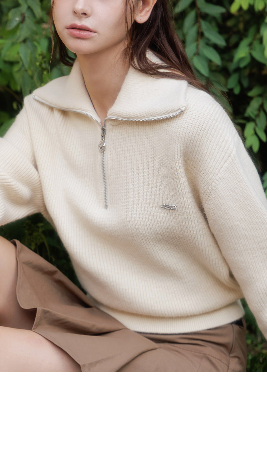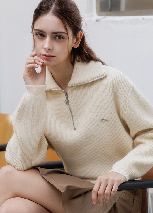 적당히 여유 있는 실루엣과 반집업 하이넥 디자인이 더해져