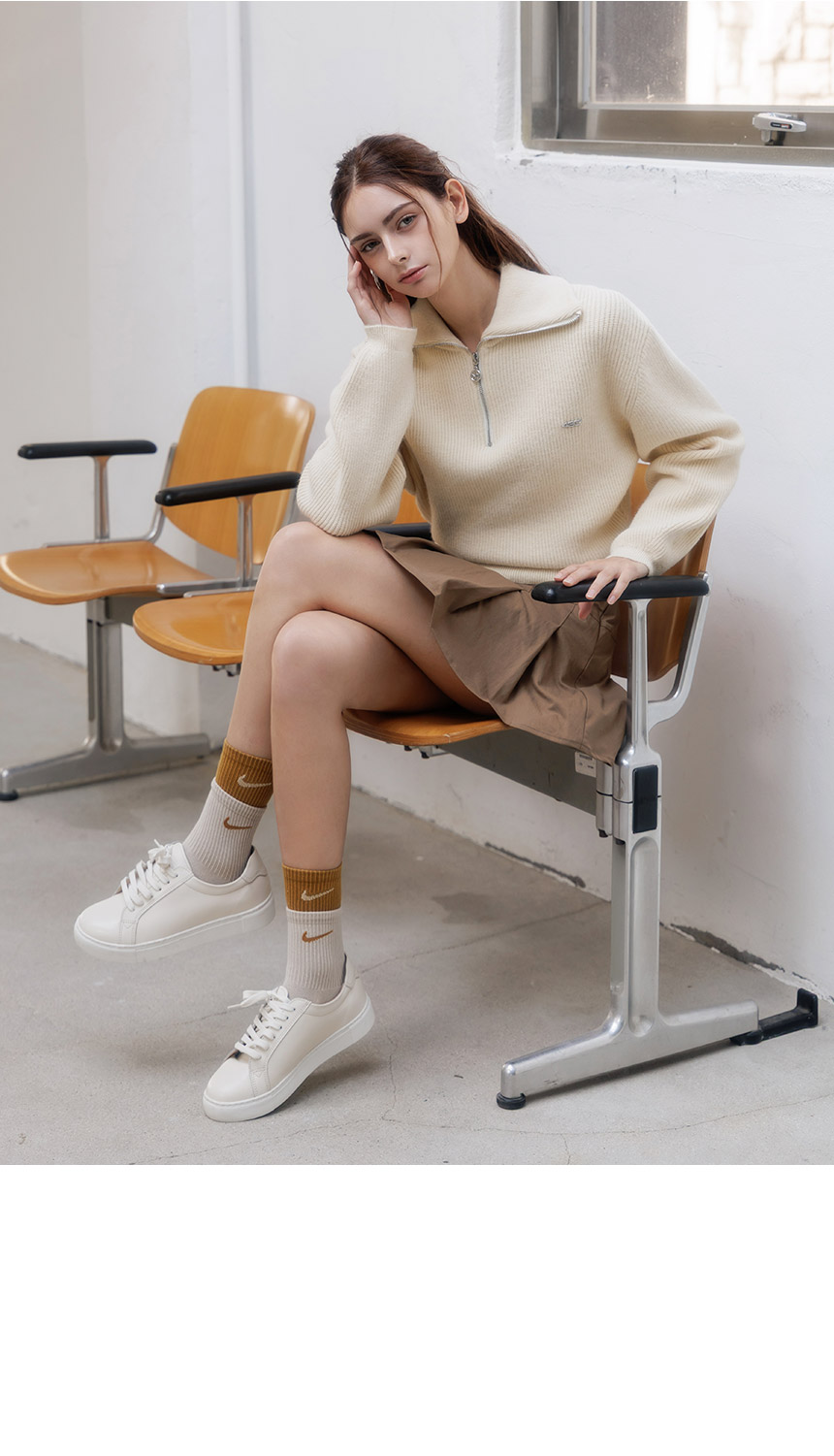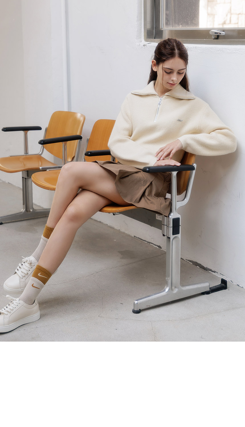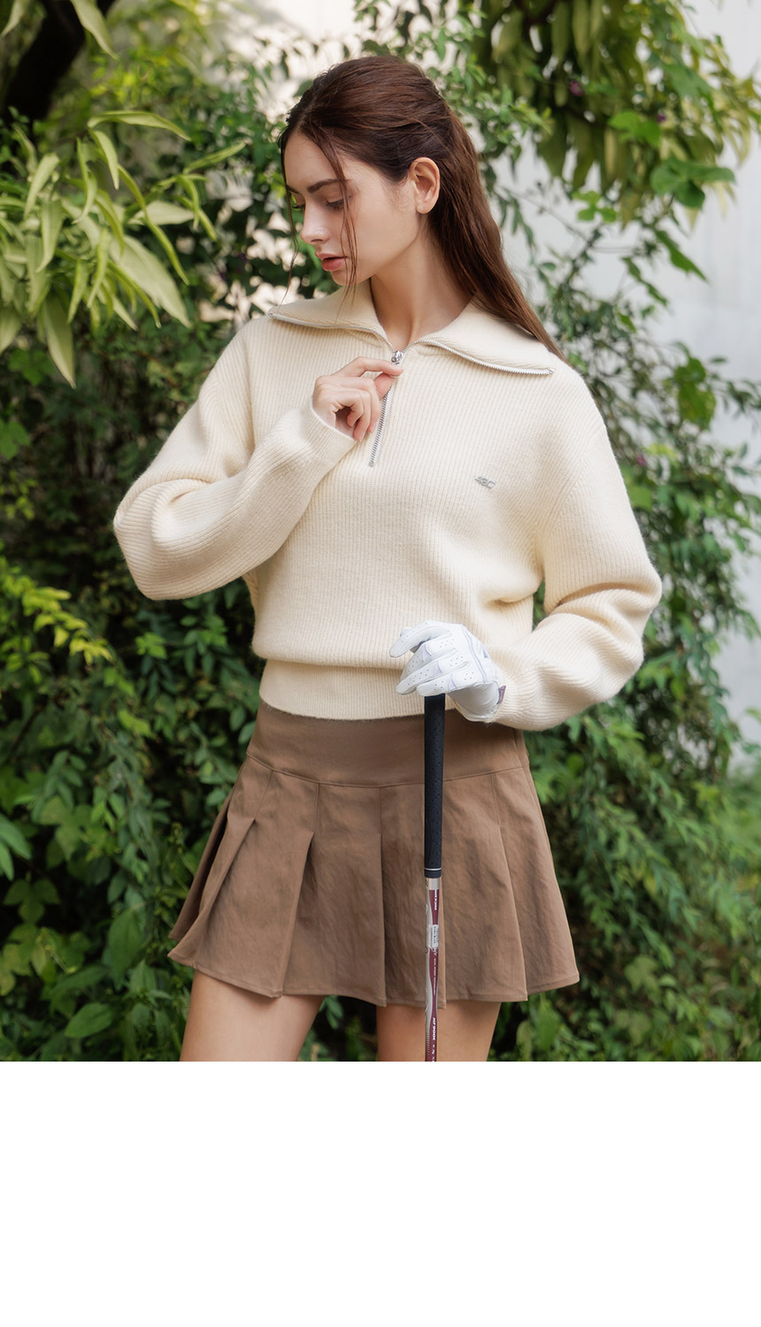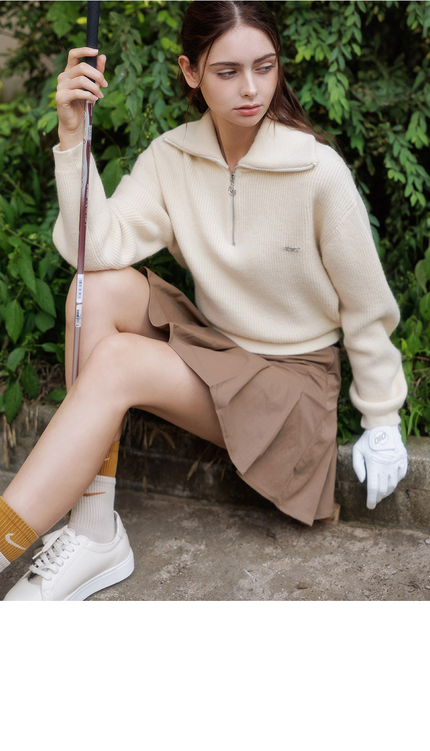 적당히 여유 있는 실루엣과 반집업 하이넥 디자인이 더해져