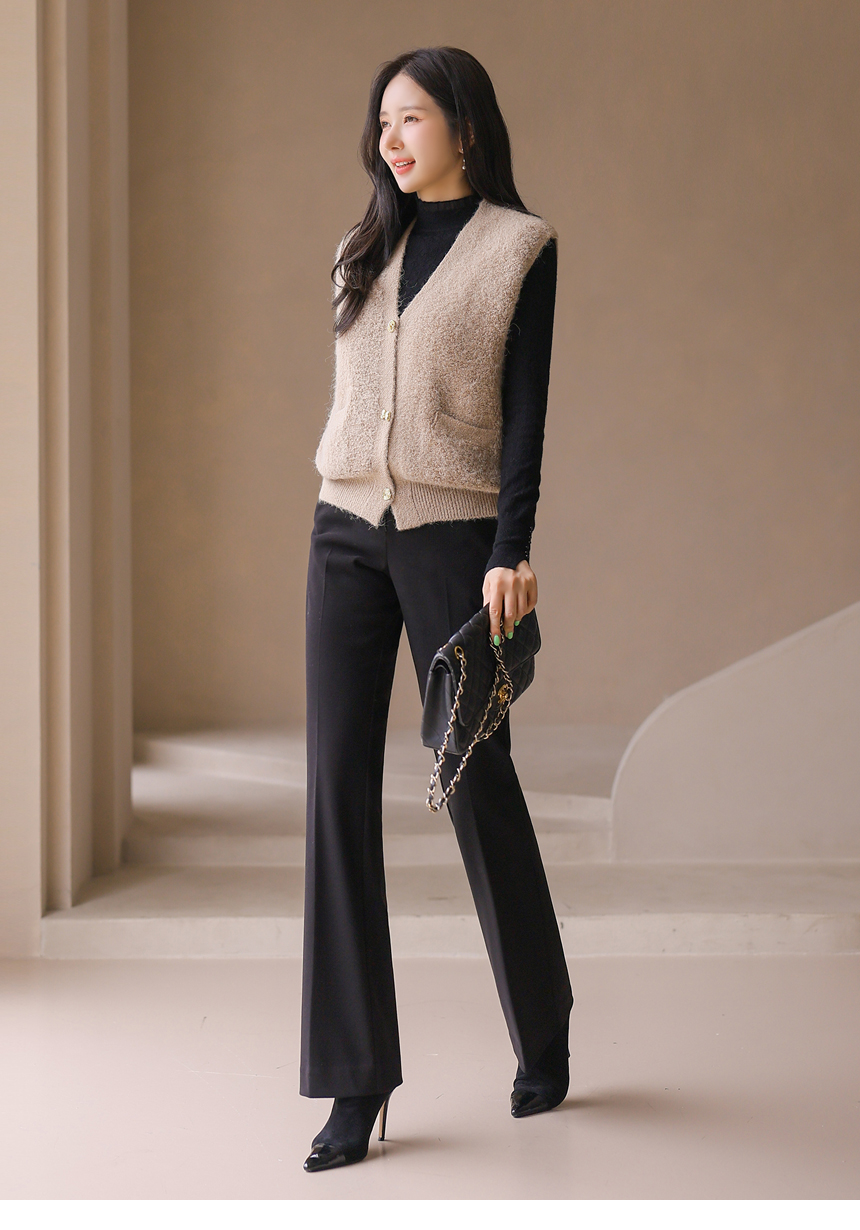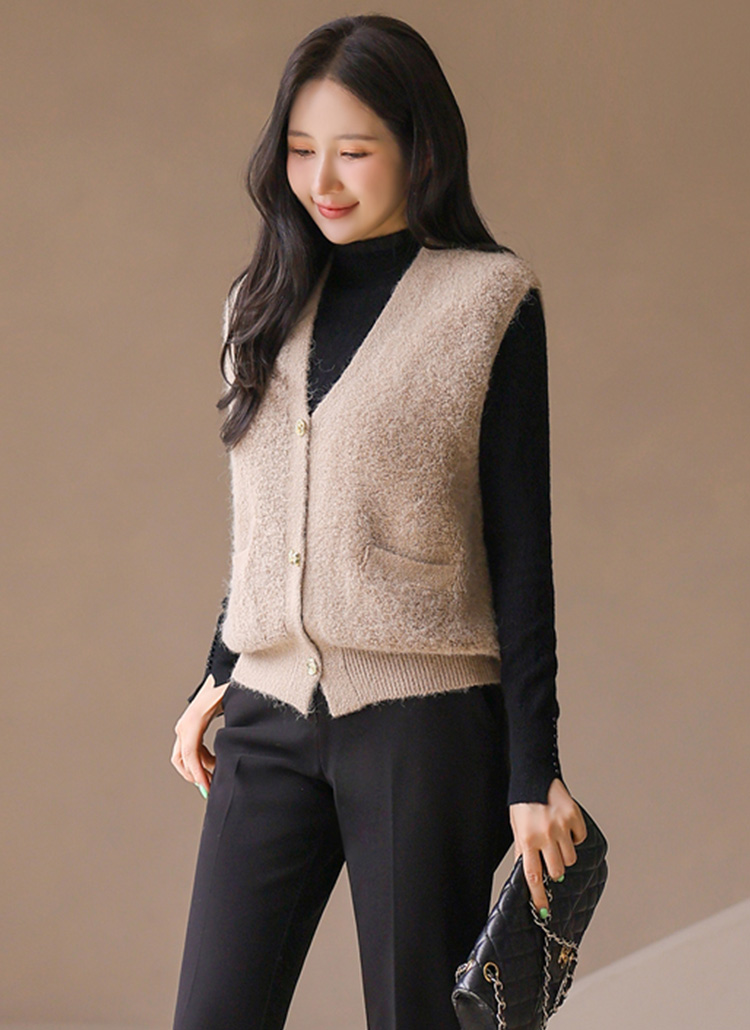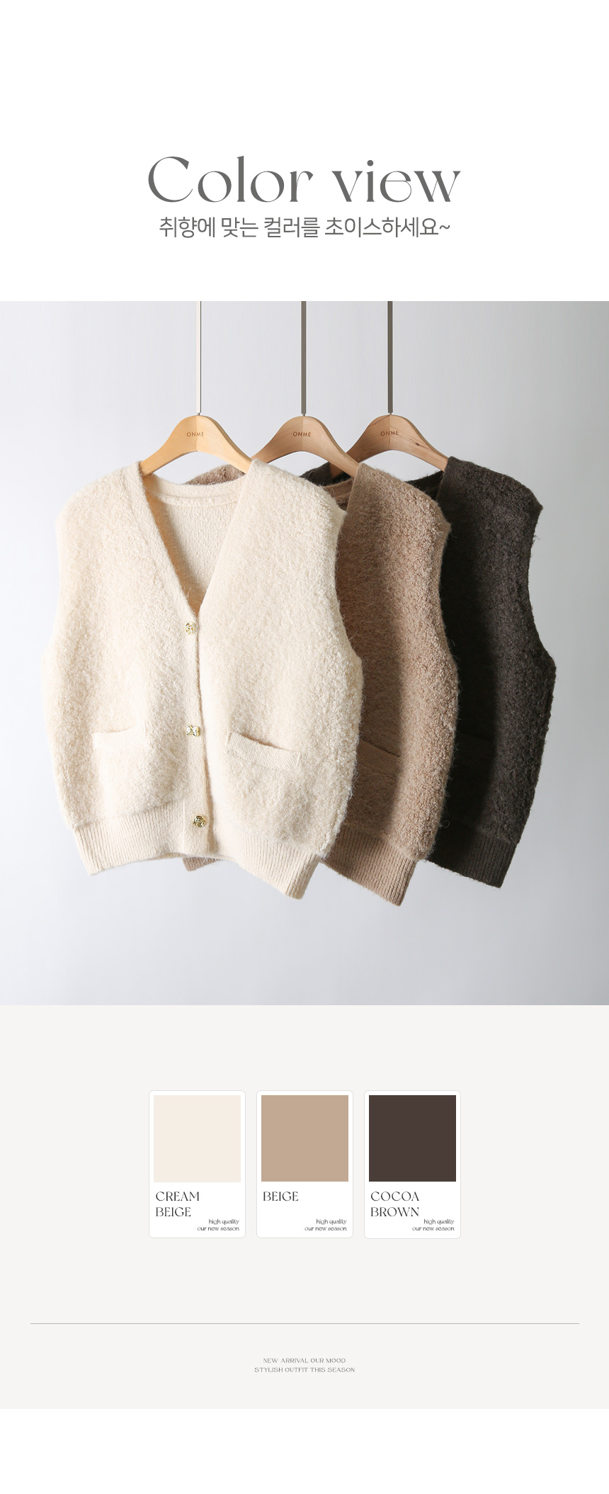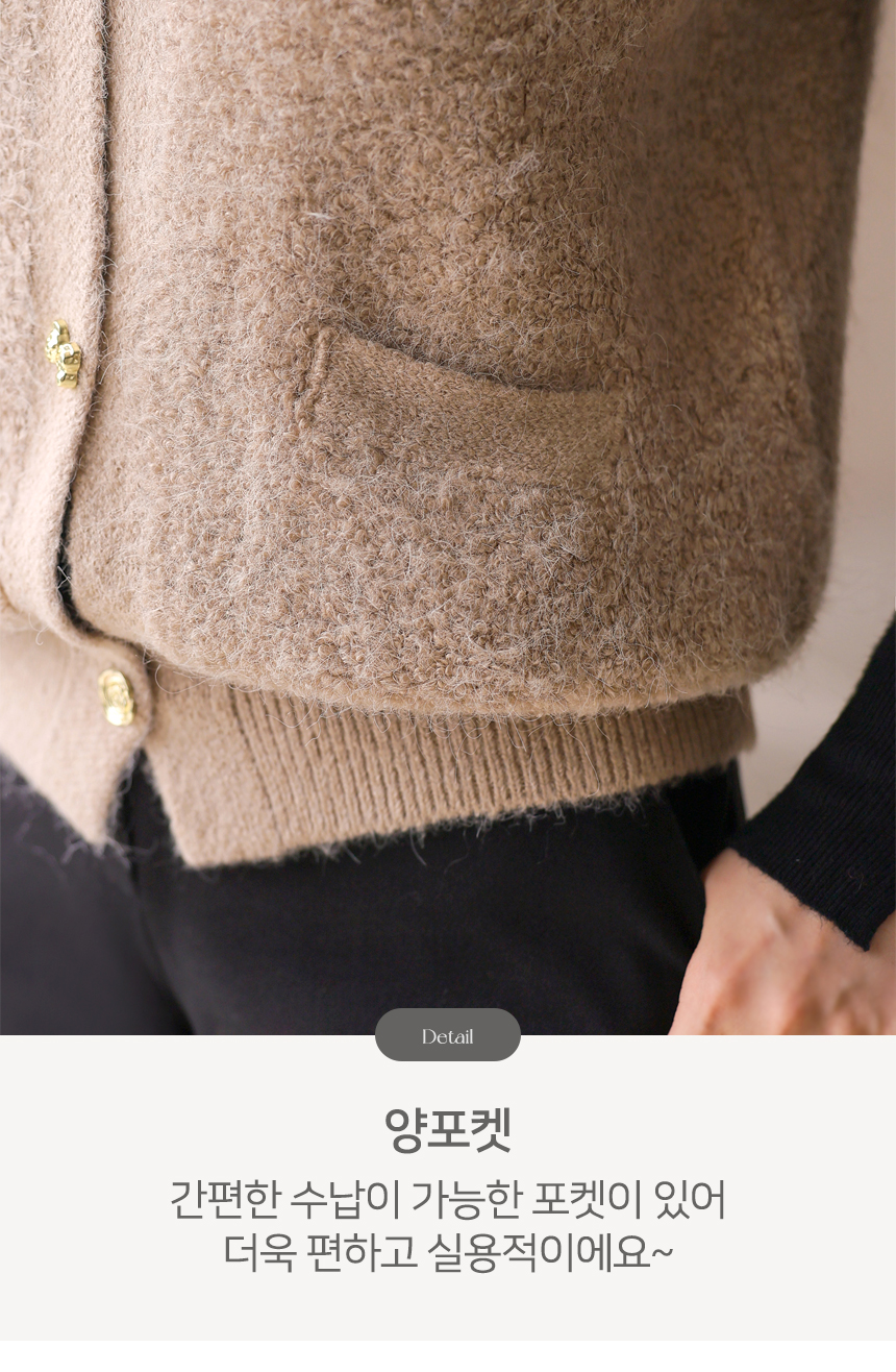 포근한 울 블렌딩 소재에 골드 버튼으로 포인트를 준 뽀글뽀글 니트 조끼에요 :)