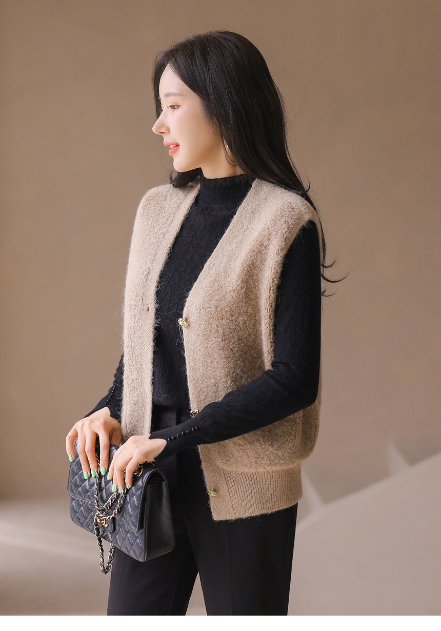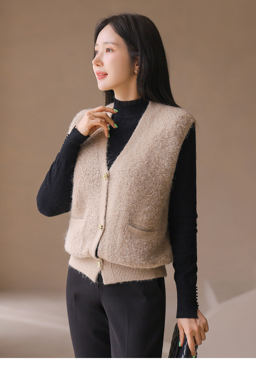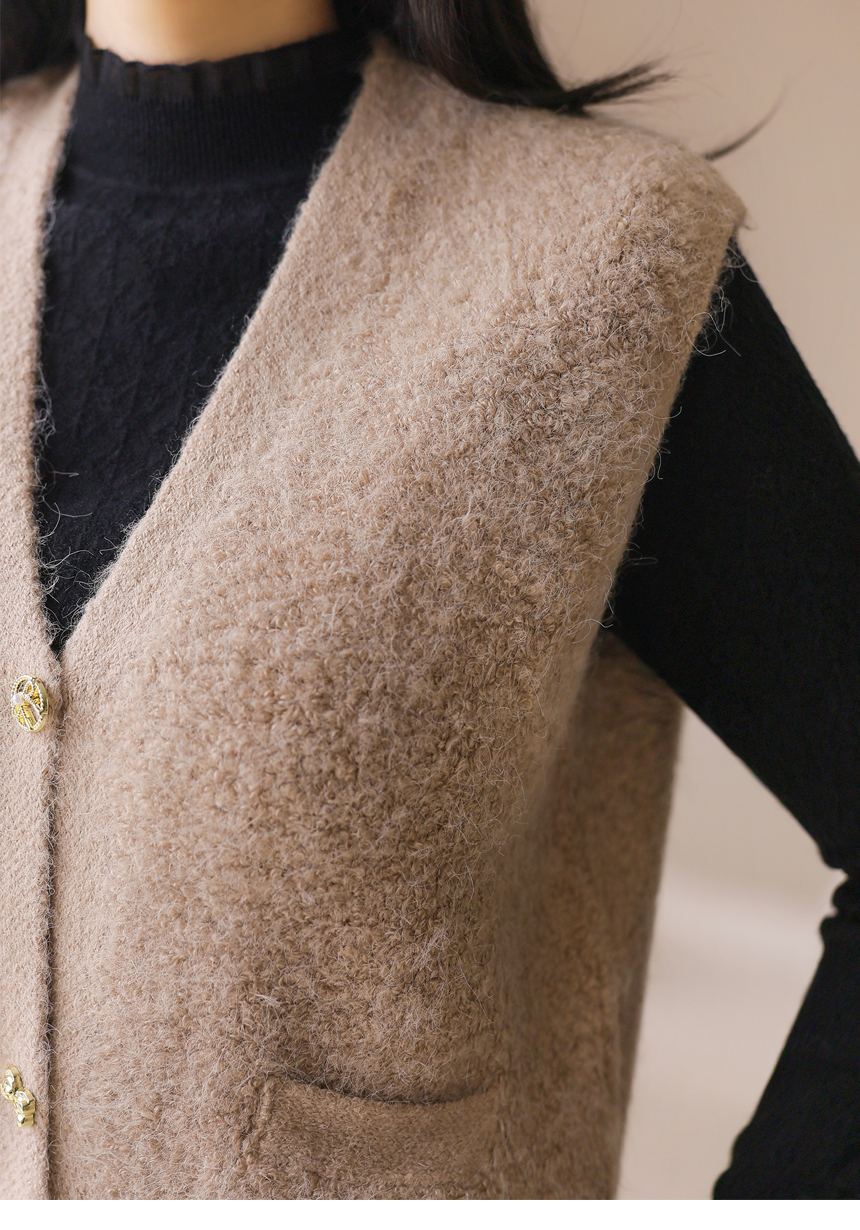 리엘브 포근 울 블렌딩 골드 버튼 뽀글뽀글 니트 조끼 베스트
