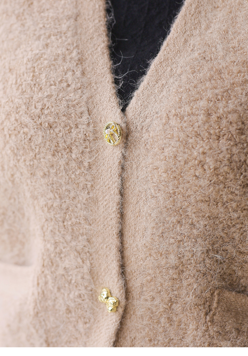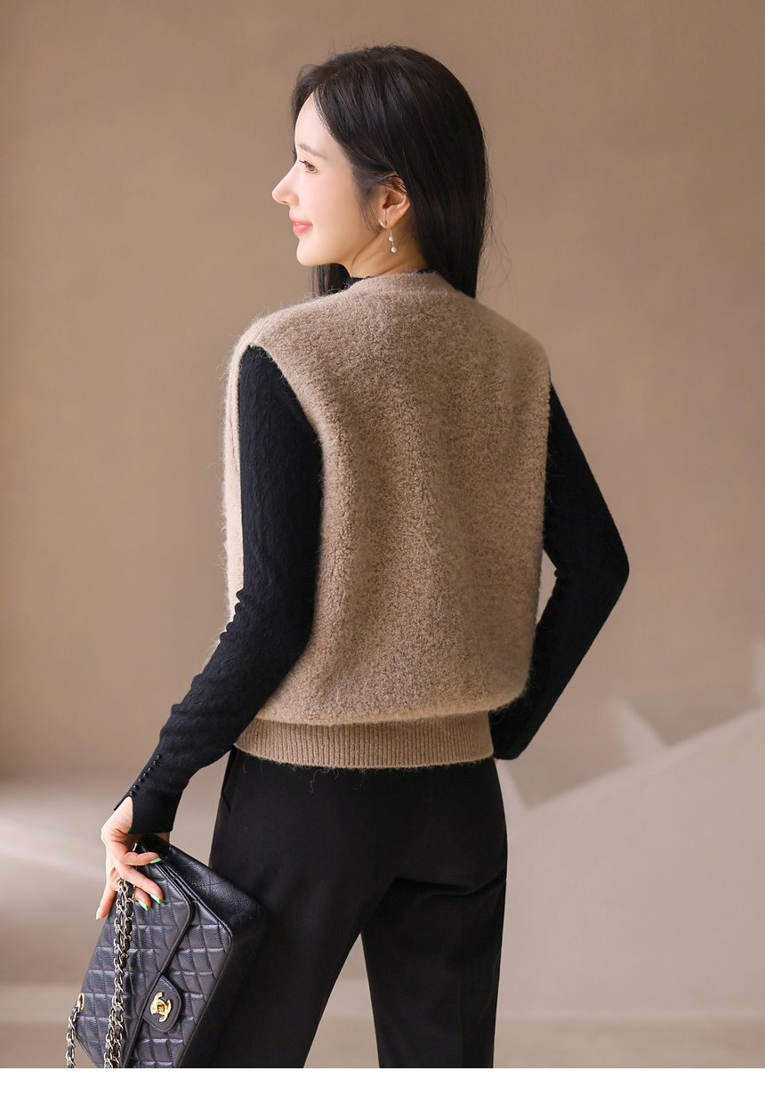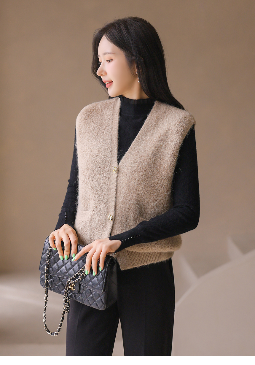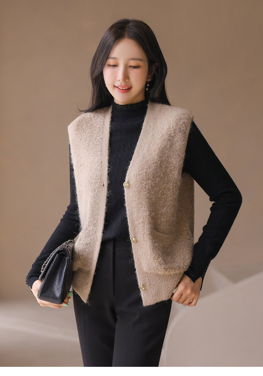 리엘브 포근 울 블렌딩 골드 버튼 뽀글뽀글 니트 조끼 베스트