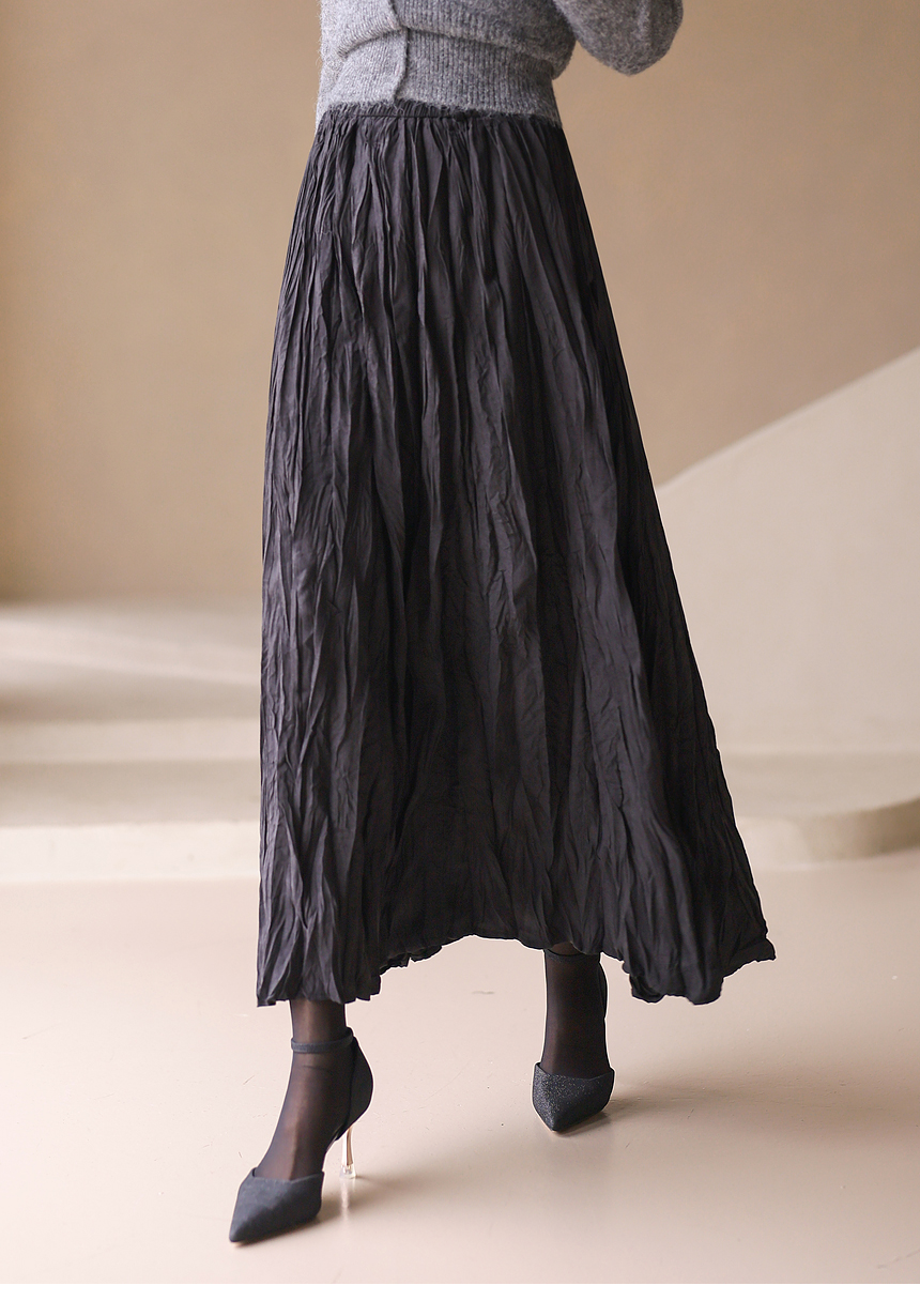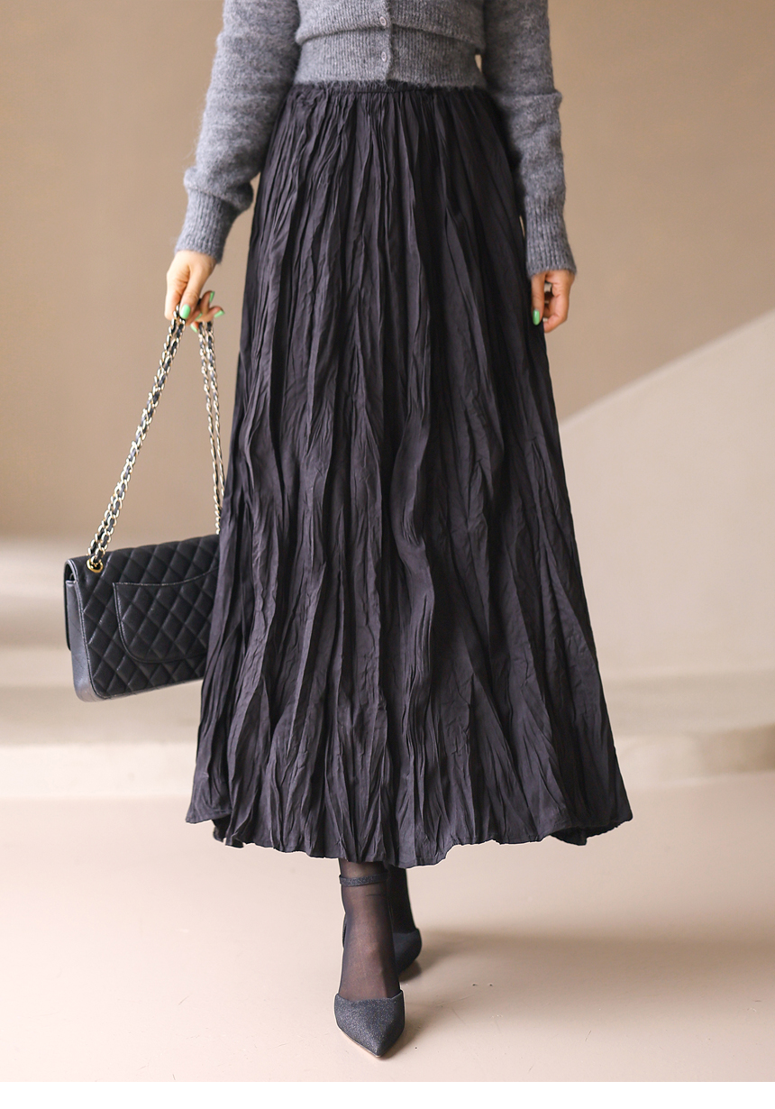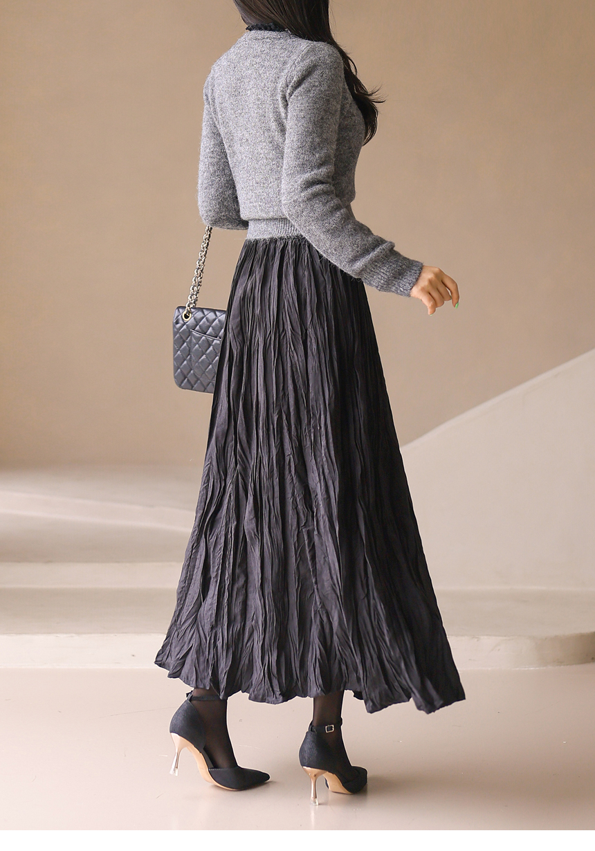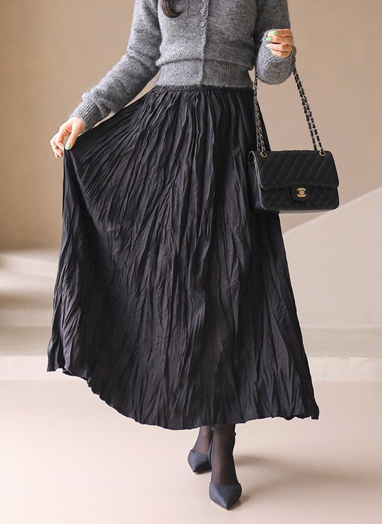 베이드 허리밴딩 벨트SET 링클 텍스쳐 A라인 롱 플레어 스커트