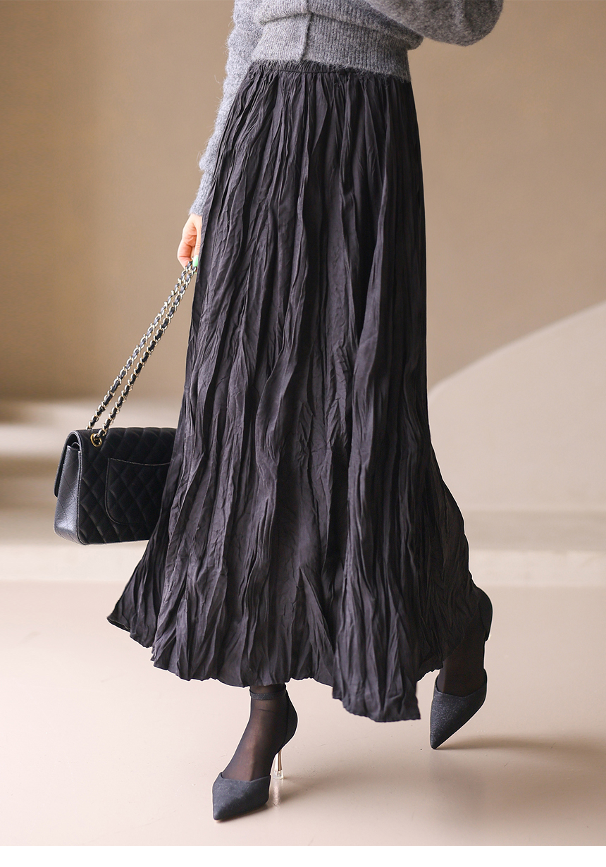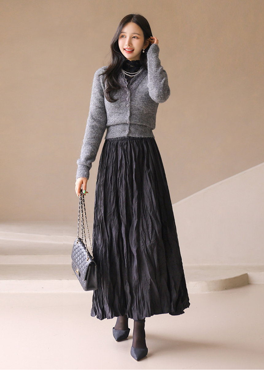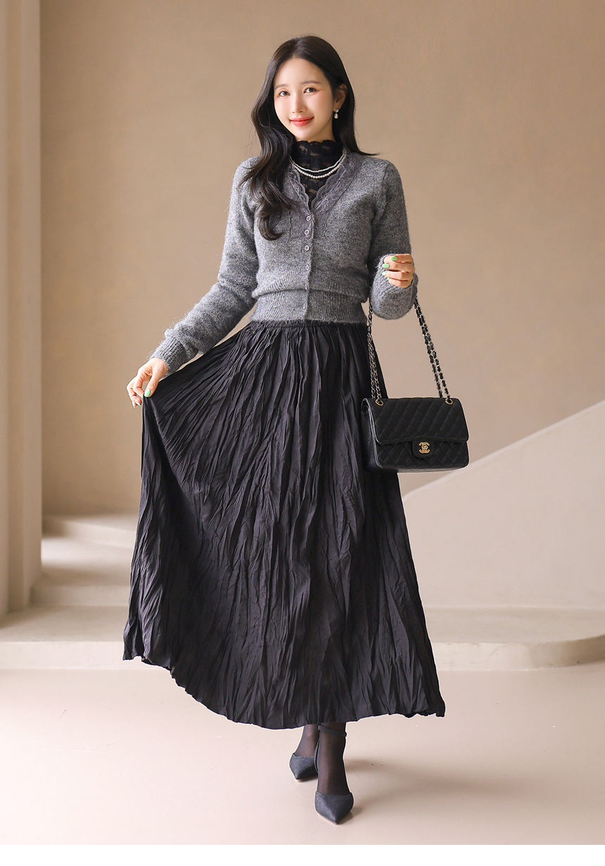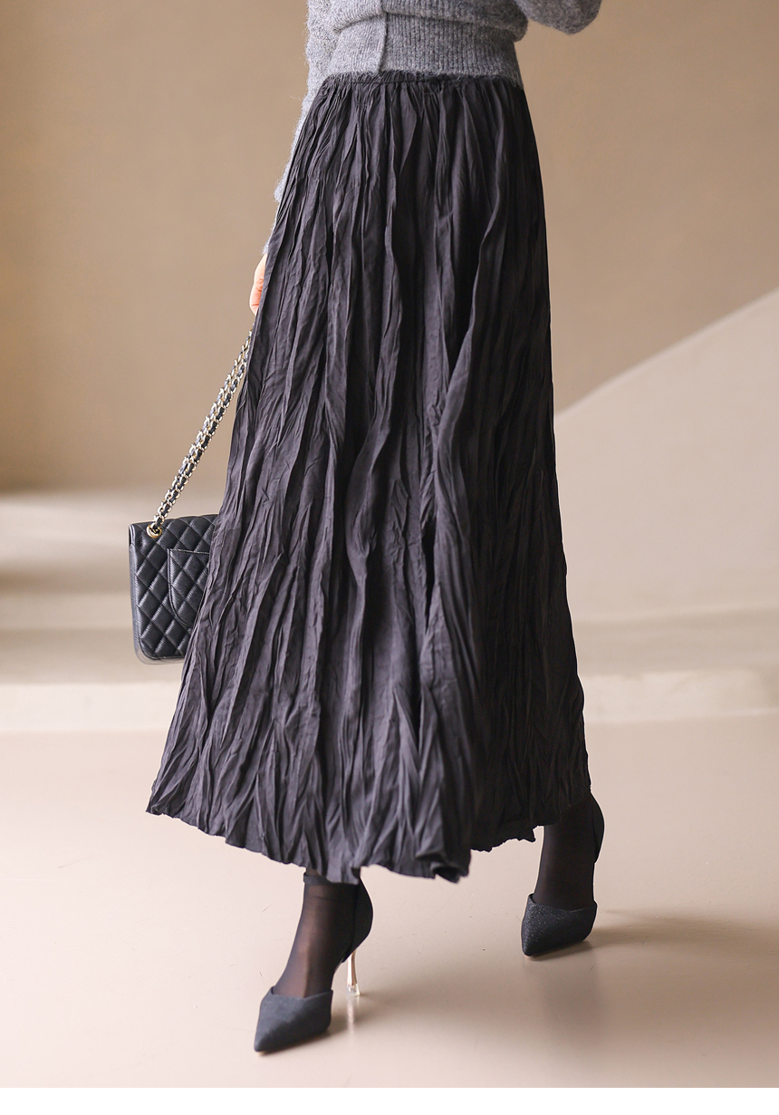 베이드 허리밴딩 벨트SET 링클 텍스쳐 A라인 롱 플레어 스커트