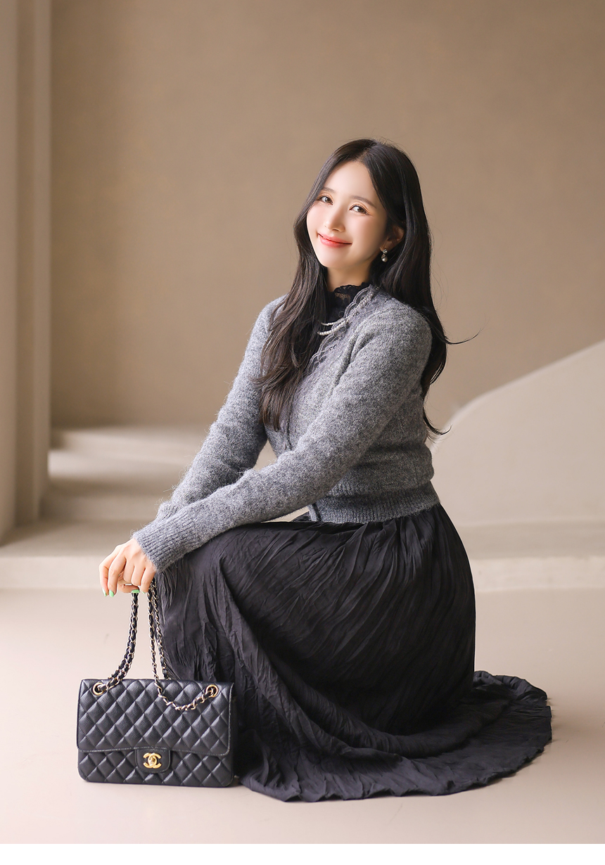 A라인의 롱 플레어 디자인으로 여성스러운 실루엣을 완성해주며,