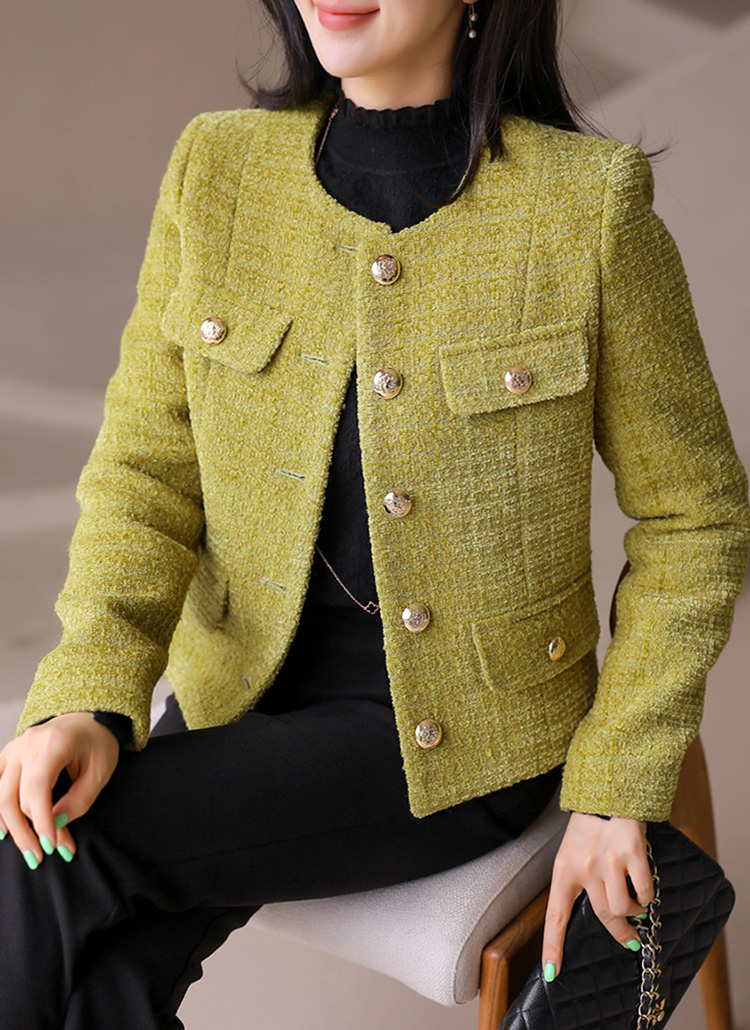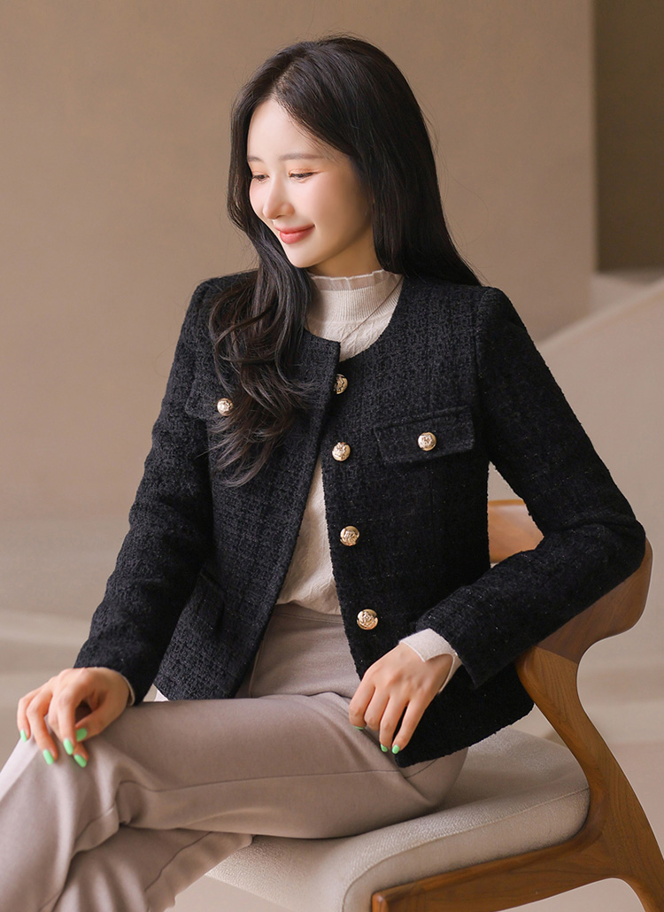 【オータムVer.】[LouisAngel] ウールブレンド ゴールドボタンノーカラーラメツイードジャケットjk42397