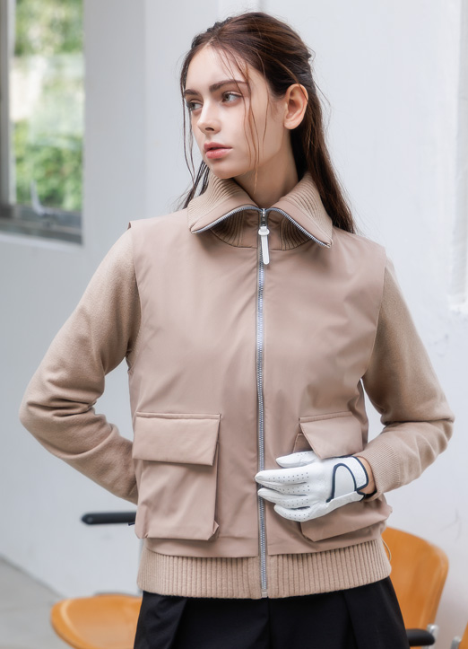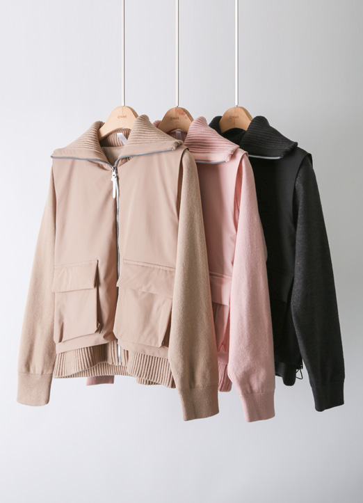 하이넥 시보리와 아웃포켓 디테일이 포인트로,