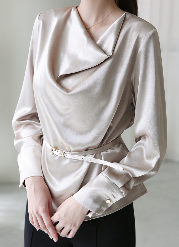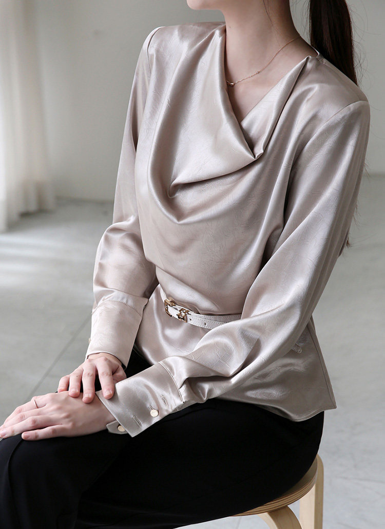 광택감이 도는 새틴 소재로 드레시하고 멋스러운 무드를 연출하는 블라우스에요 :)