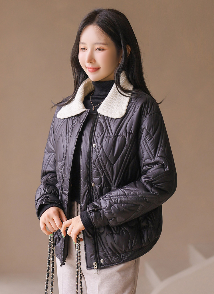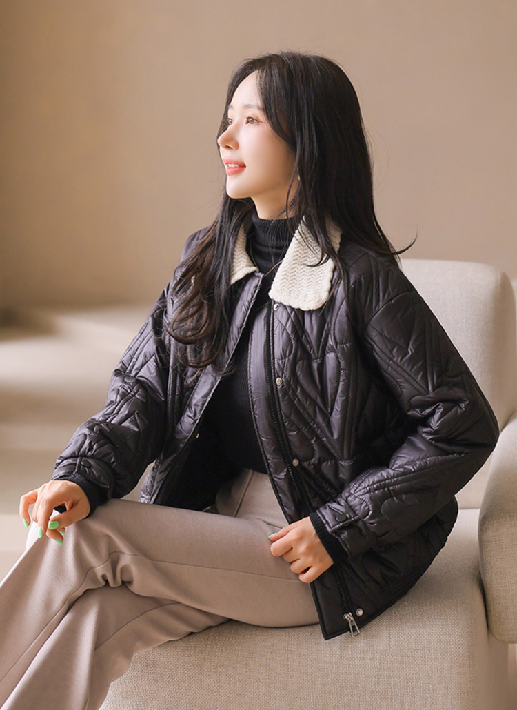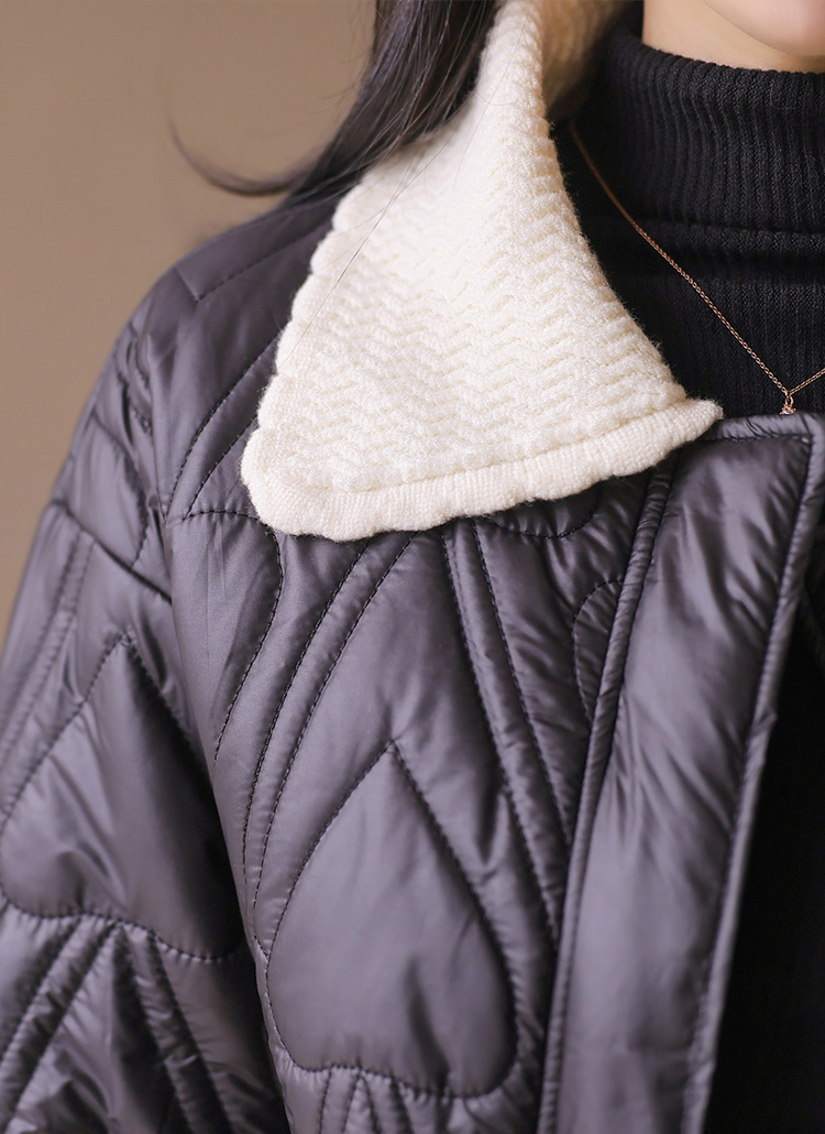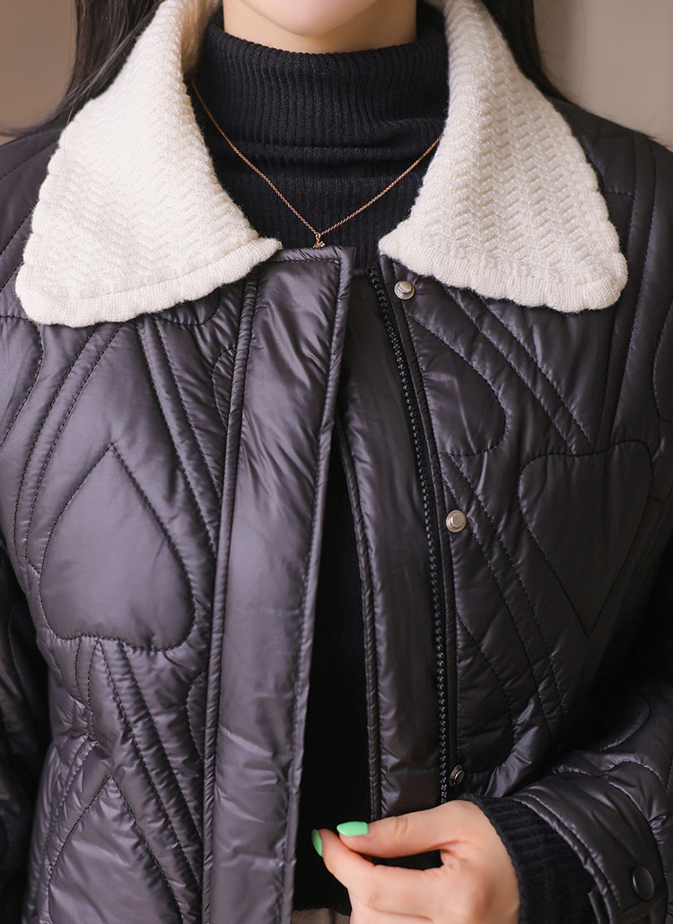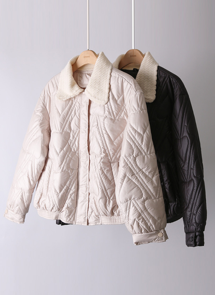 配色ニットカラー付きハートキルティングエコダウンジャケットjp42445