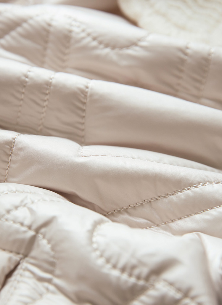 하트 모양의 퀄팅이 사랑스럽게 돋보이는 패딩 점퍼에요 :)