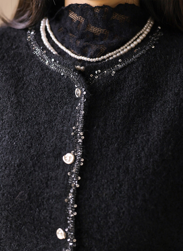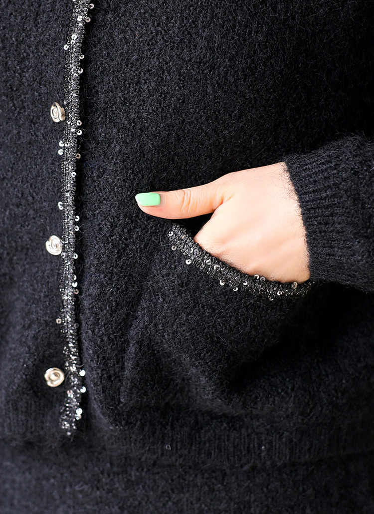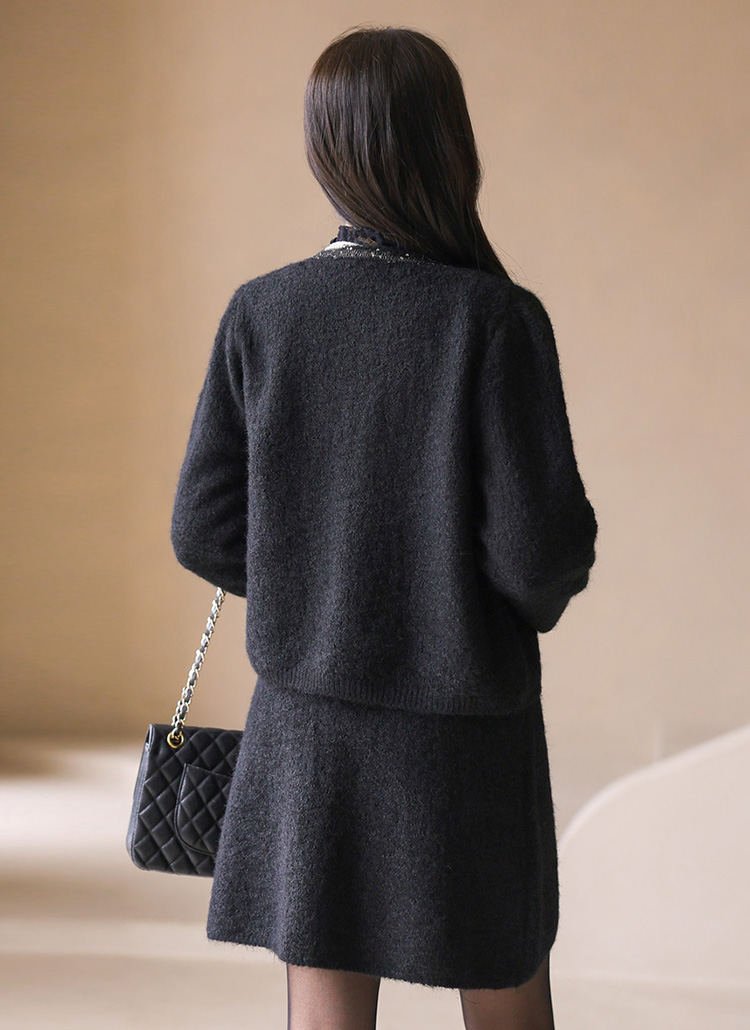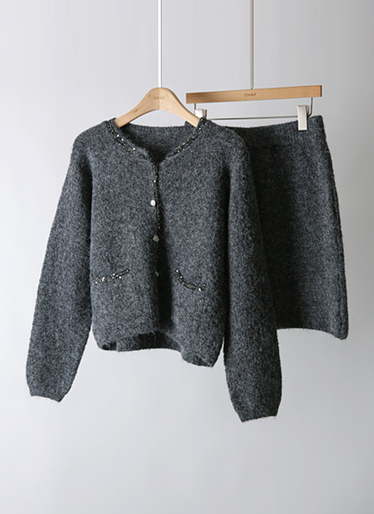 【2点特価】スパンコールトリム ブークレニットカーディガン&ミニスカートセットアップ SET42448