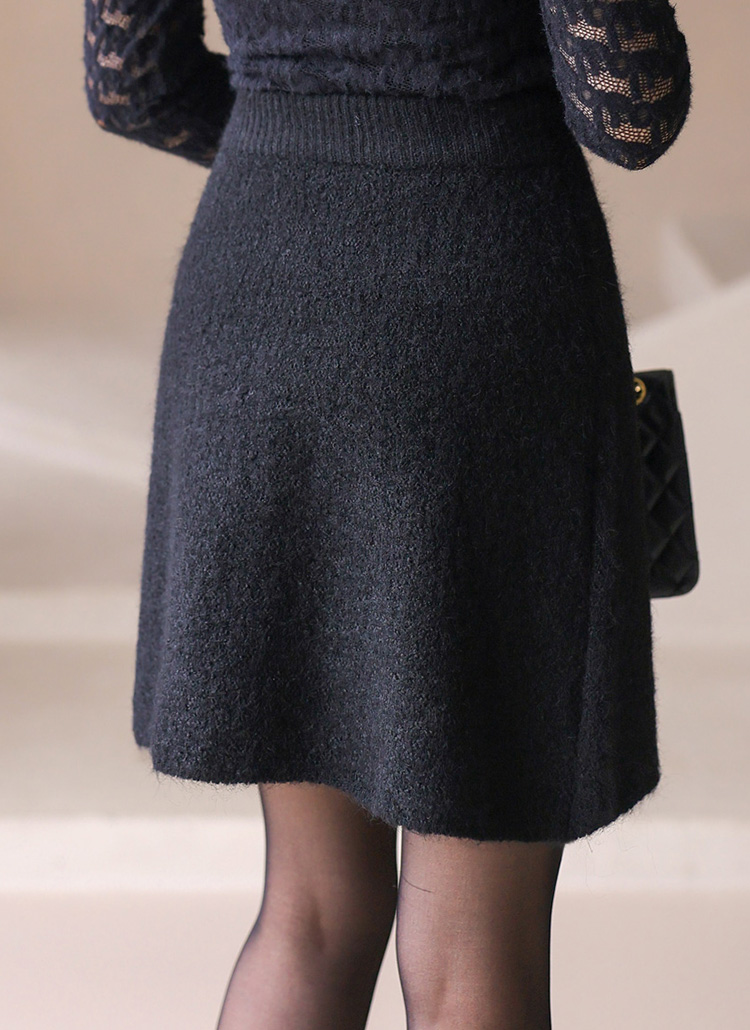 심플한 니트 미니 스커트는 어떤 상의와도 잘 어울려