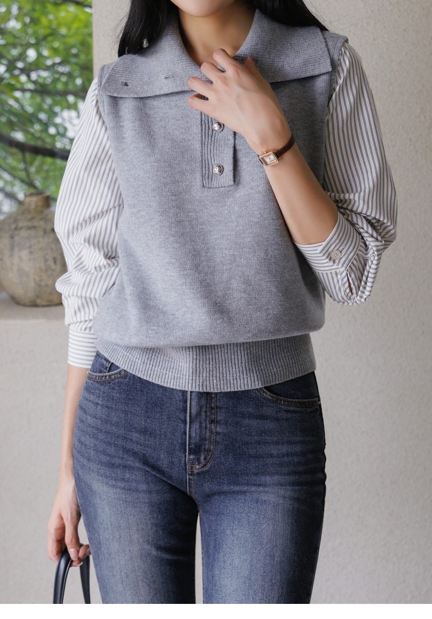 스트라이프 셔츠가 레이어드되어 세련된 무드와