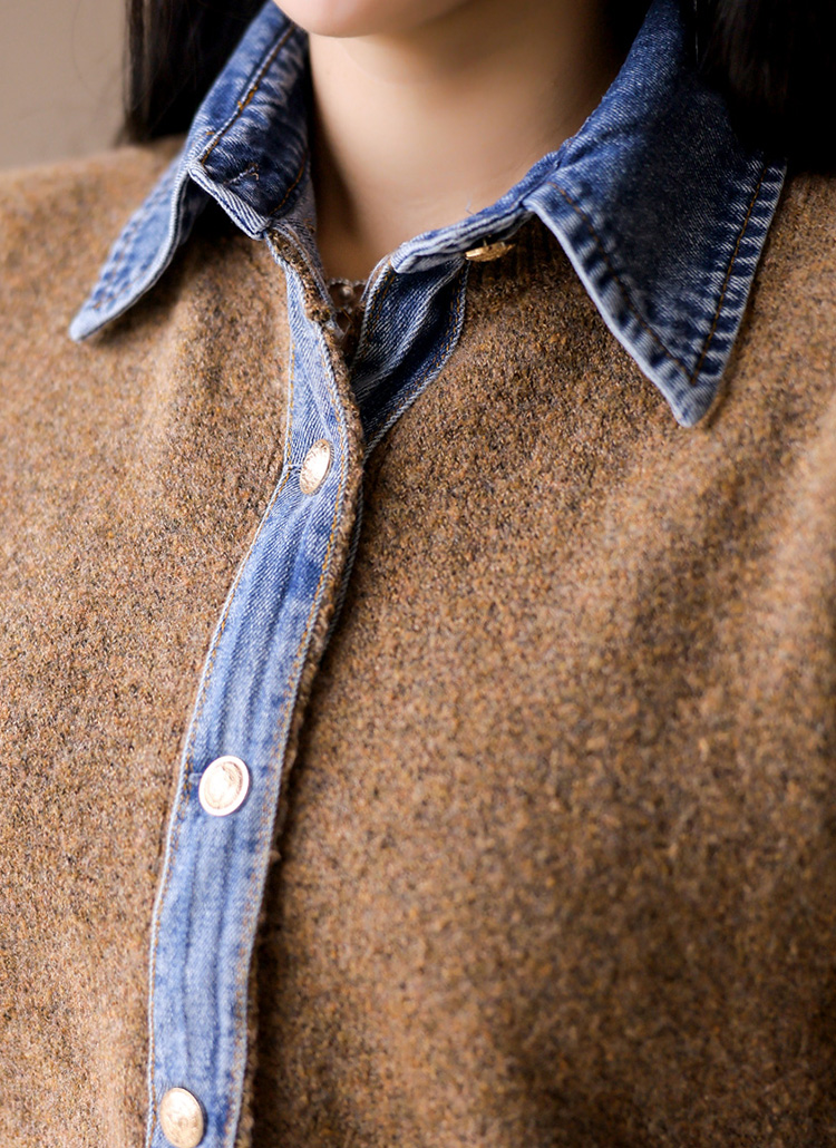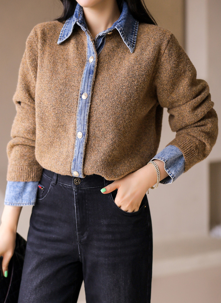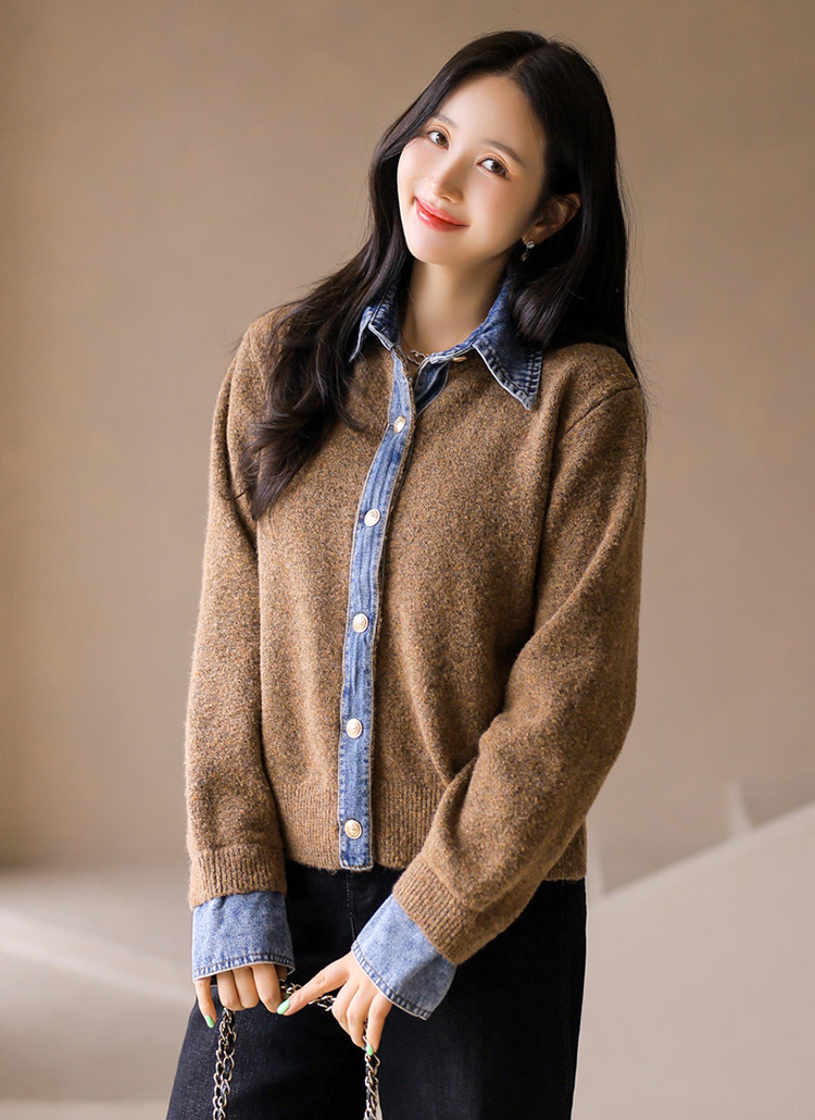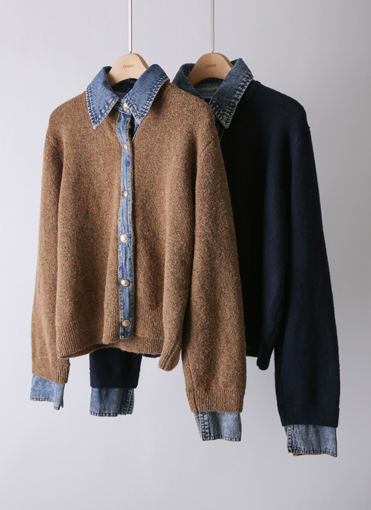 レイヤード風 デニムドッキング ニットカーディガン cd42496