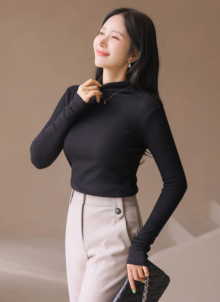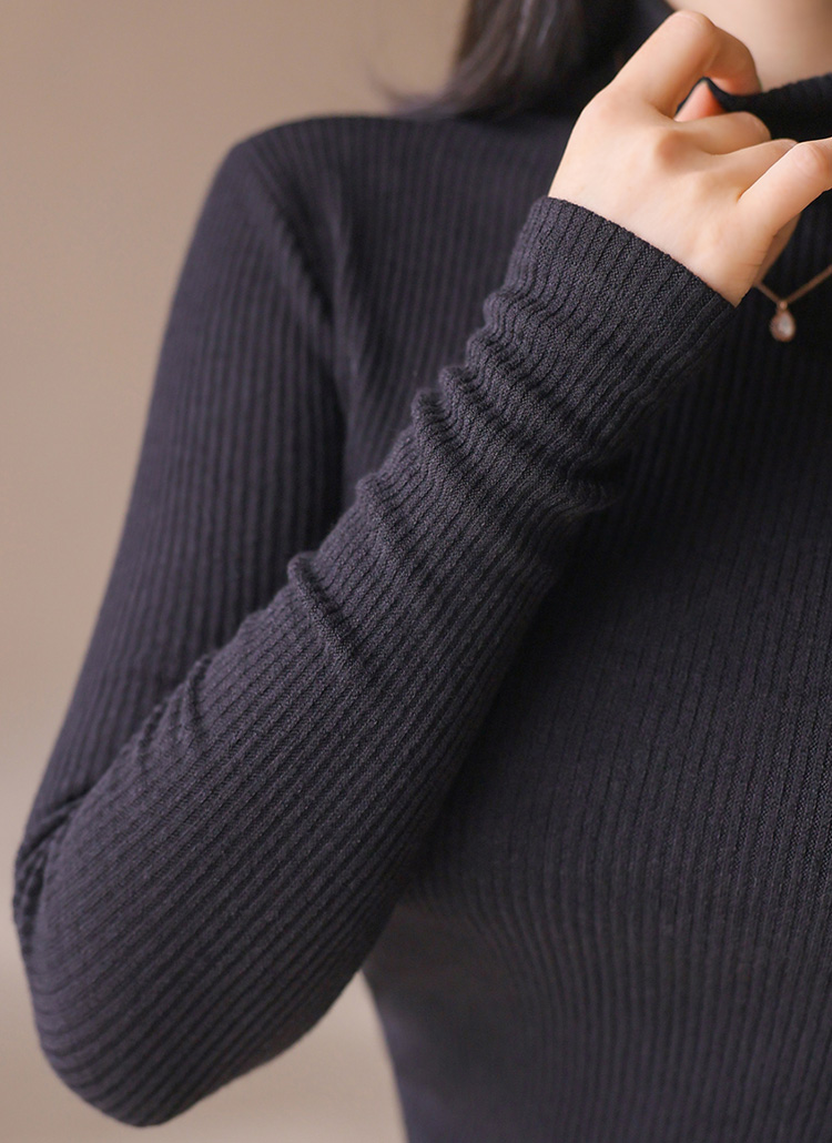 적당한 두께감의 골지 니트로 포근한 감촉을 선사하며
