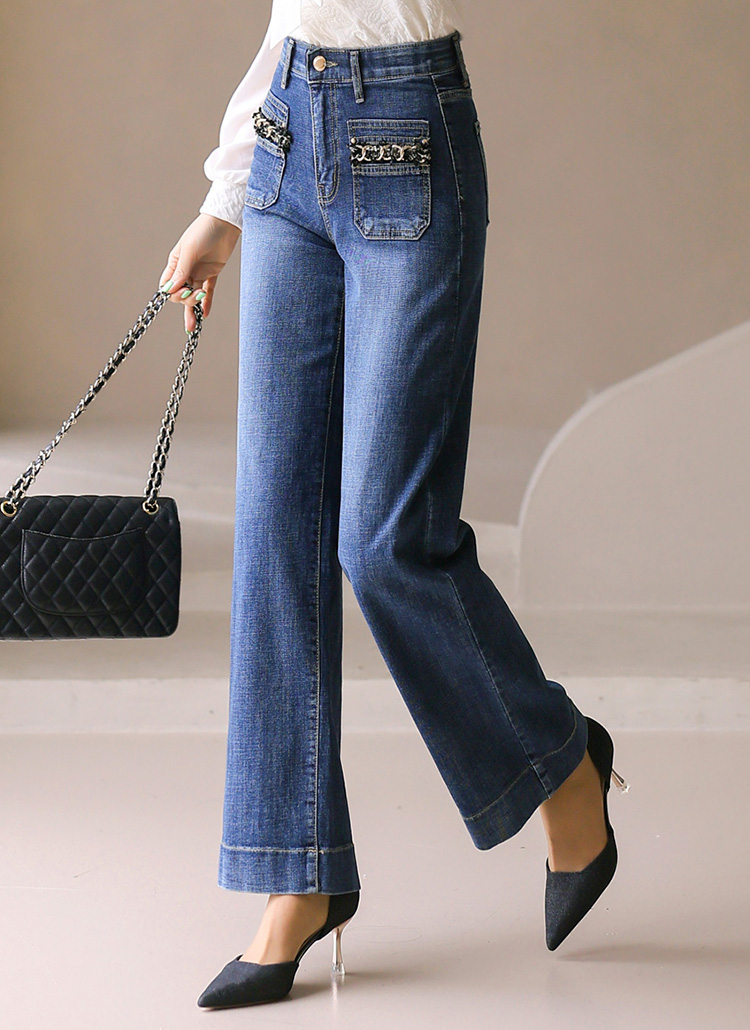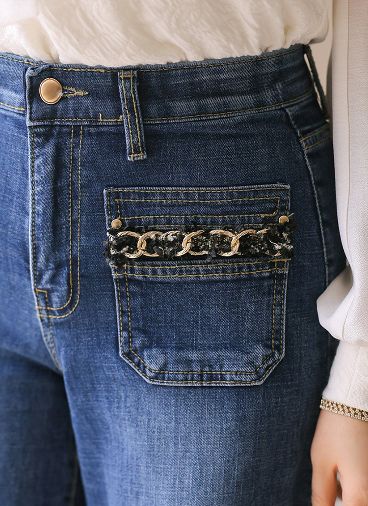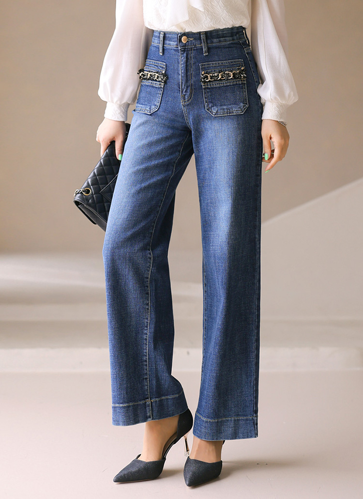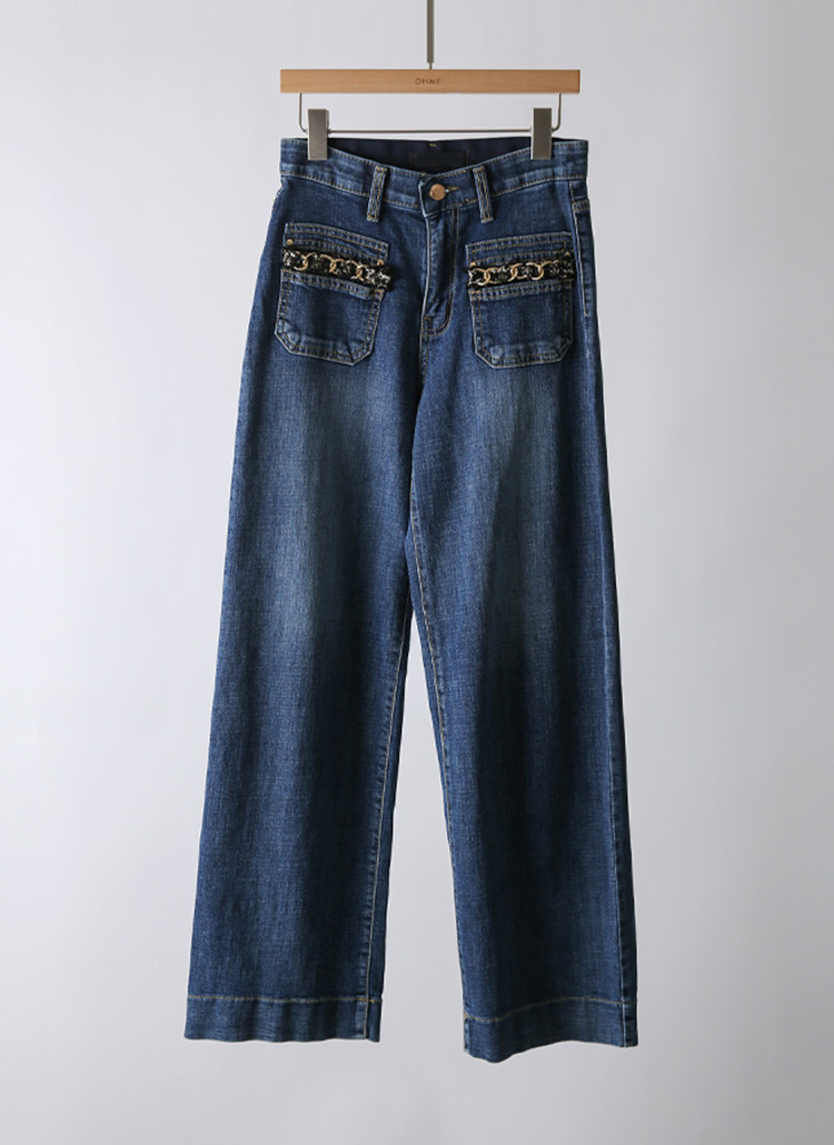 ゴールドチェーンフロントポケットワイドデニムパンツpt42505