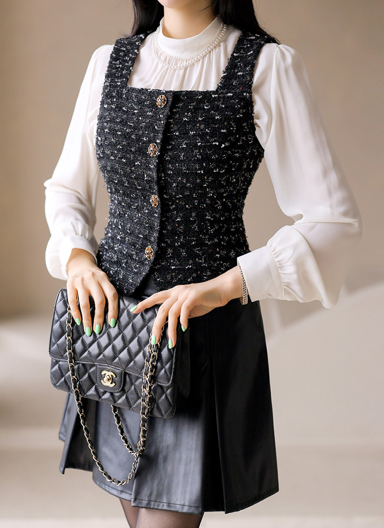 [LouisAngel] スパンコールツイードスクエアネックベストvt42526