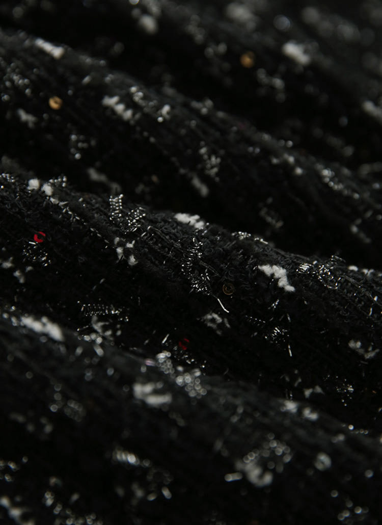 펄이 가미된 트위드 소재에 볼드한 쥬얼 버튼을 매치해