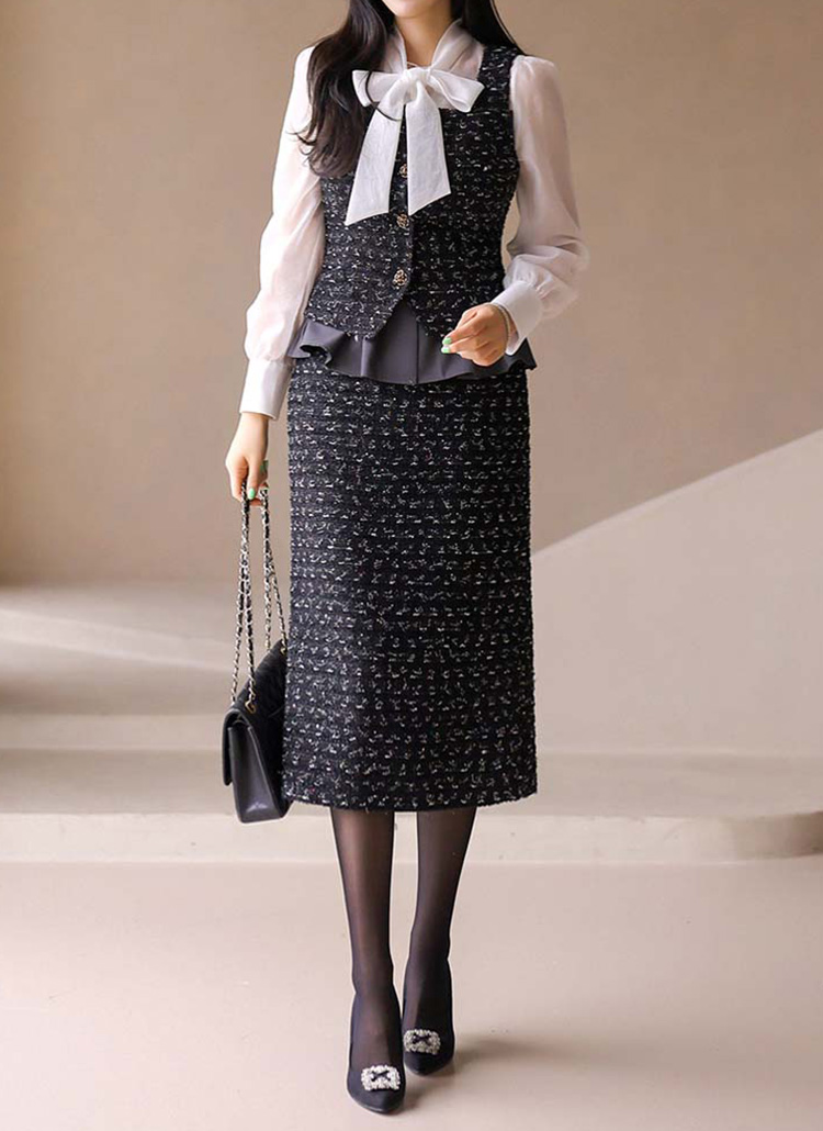 [LouisAngel] スパンコールツイードペンシルスカート sk42532