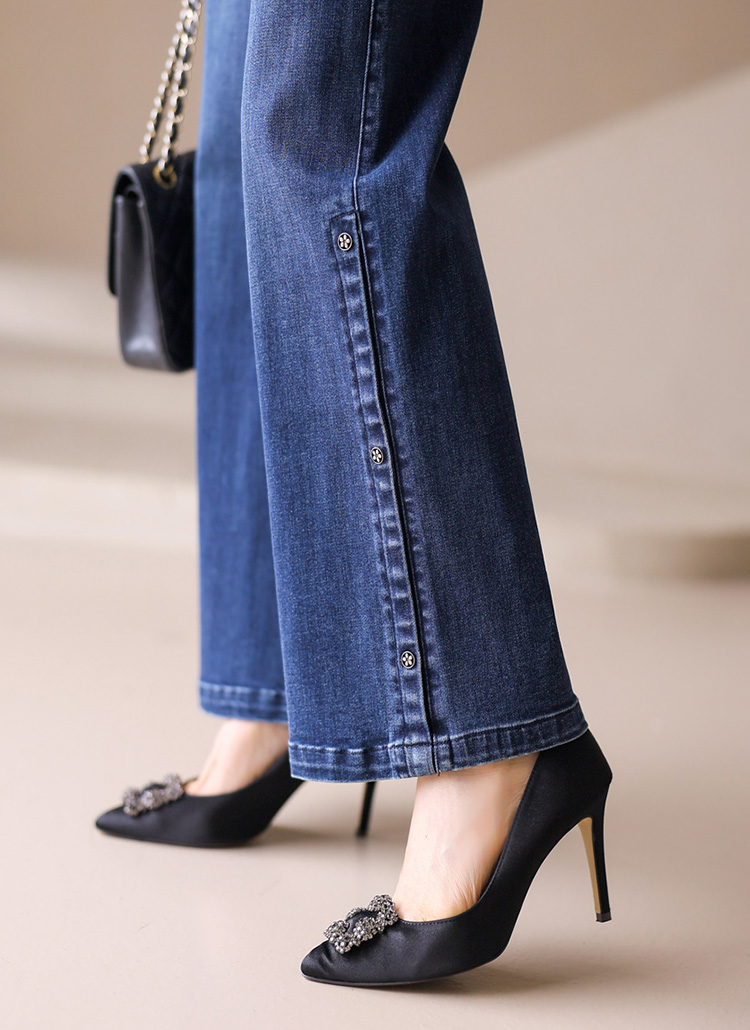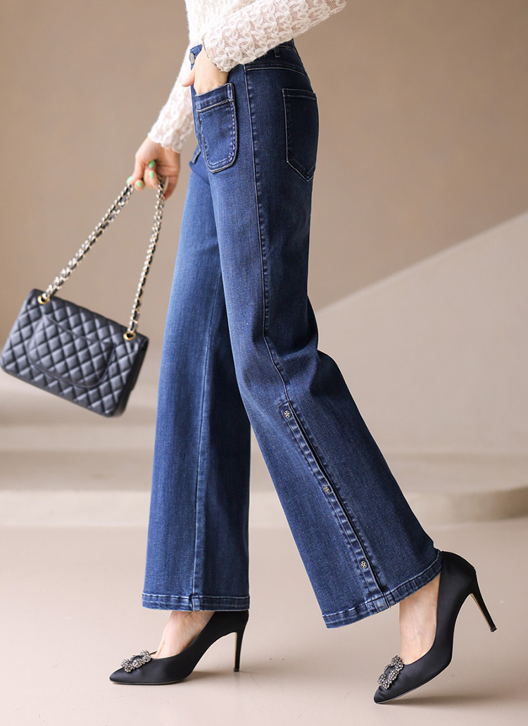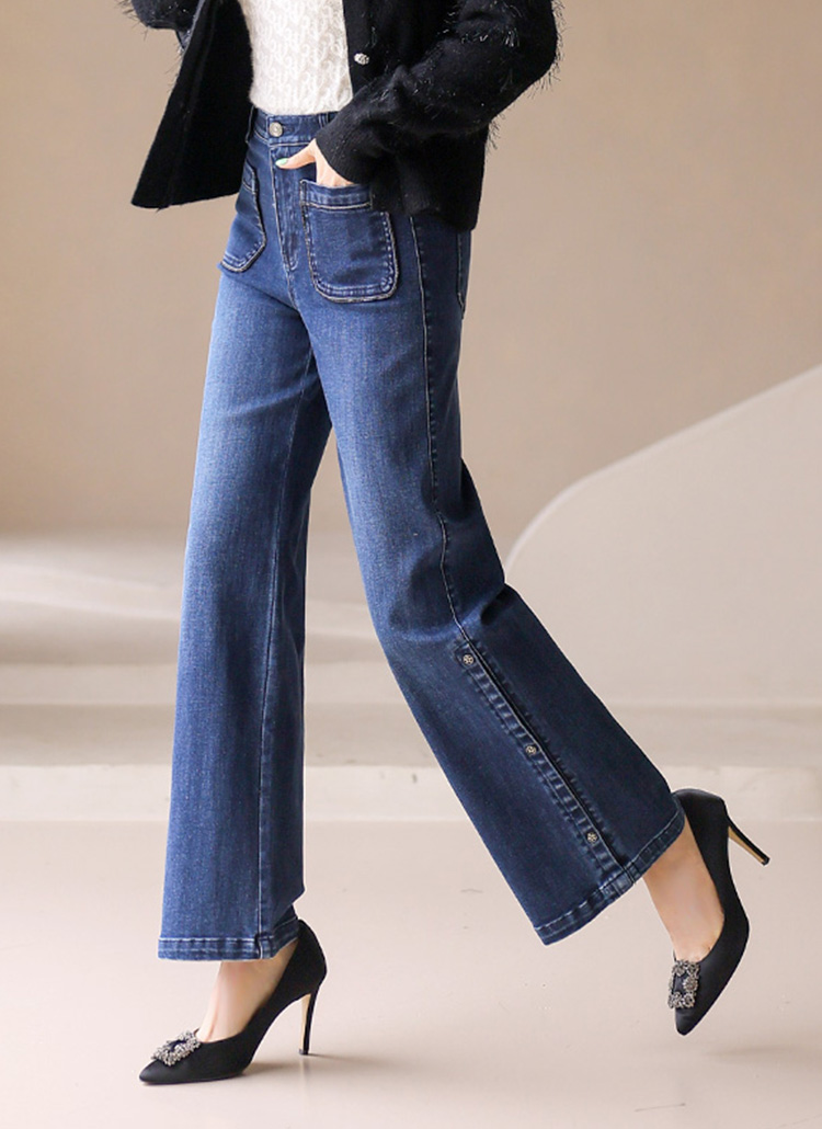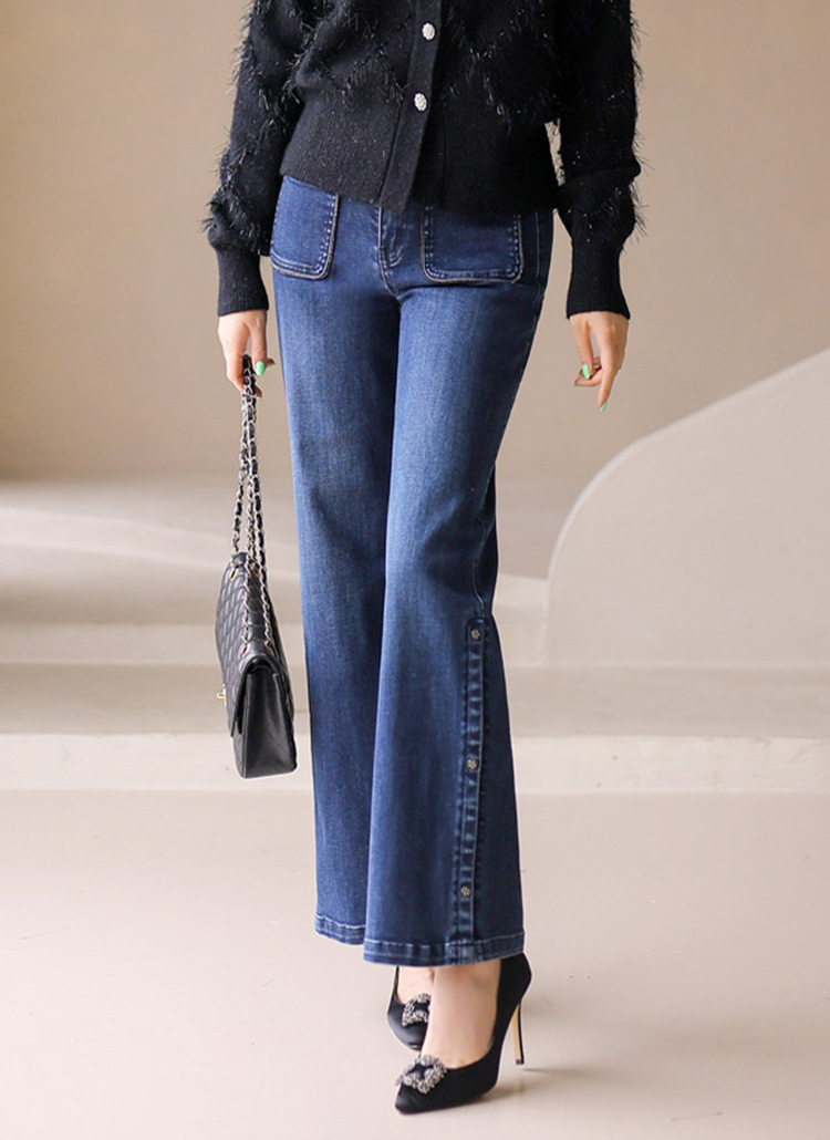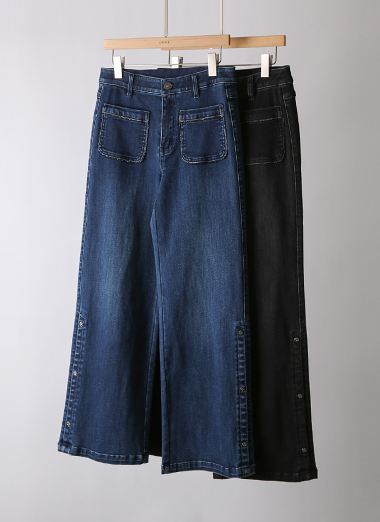 フロントポケットサイドボタンフレアデニムパンツ pt42538