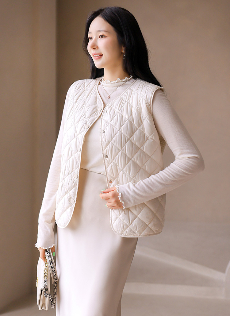 ケーブルニット切り替えベーシックキルティングベスト vt42577